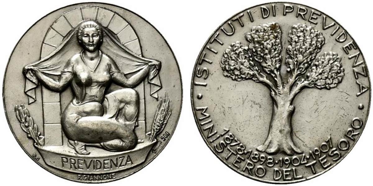 Reverse: ISTITUTI DI PREVIDENZA = • MINISTERO DEL TESORO •