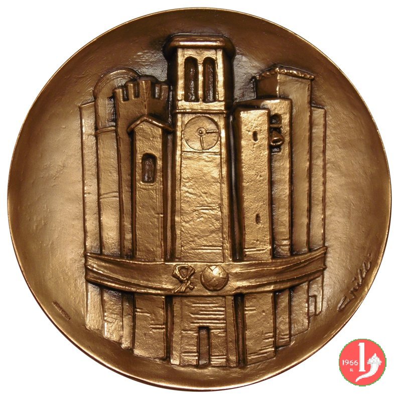 entro rilievo circolare su campo a tre campiture differenti: testa turrita della figura allegorica dell'Italia turrita