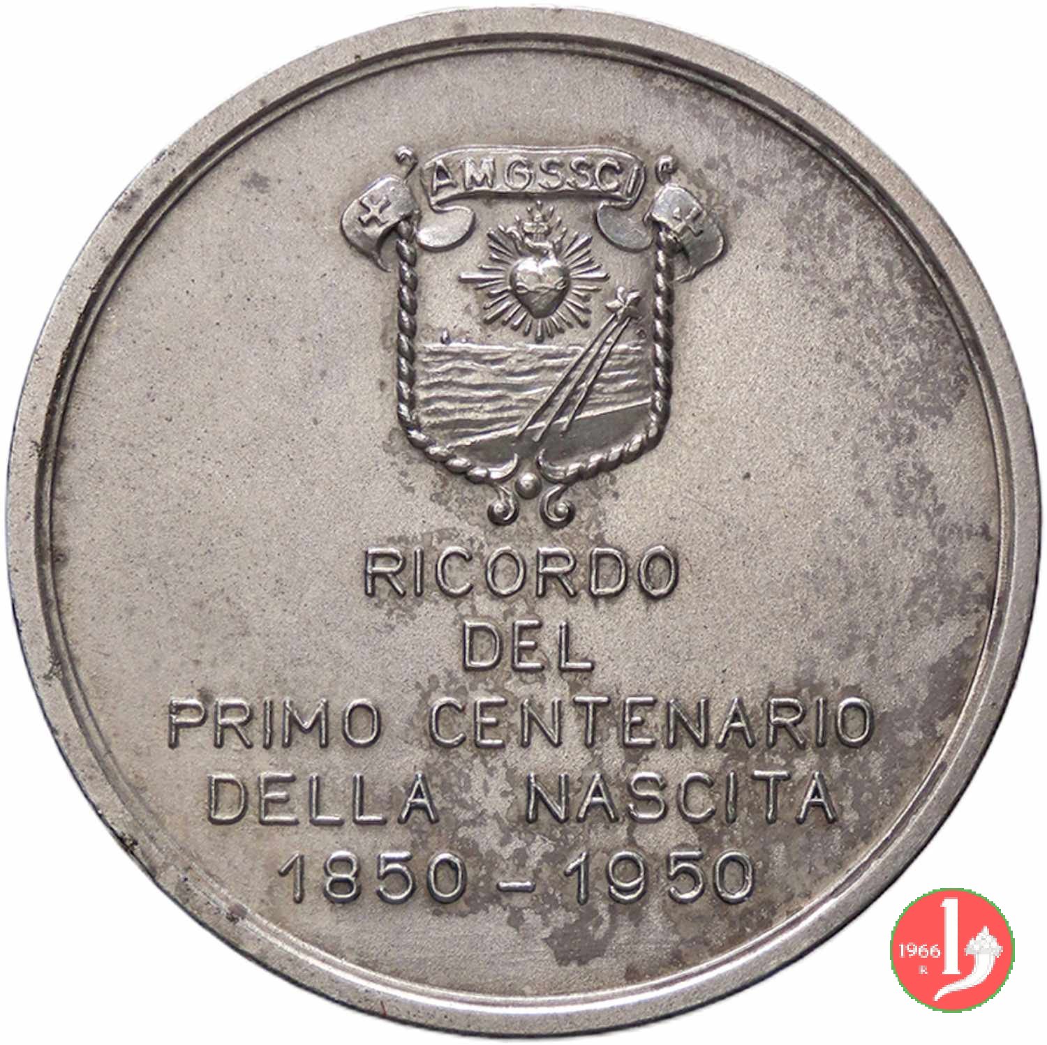 100° Francesca Saverio Cabrini 1950 Obverse: SANCTA FRANCISCA _ XAVERIO CABRINI busto velato e nimbato a sx della Santa sotto: D. COLOMBO & C. - MILANO nel campo: RICORDO = DEL = PRIMO CENTENARIO = DELLA NASCITA = 1850-1950 | |