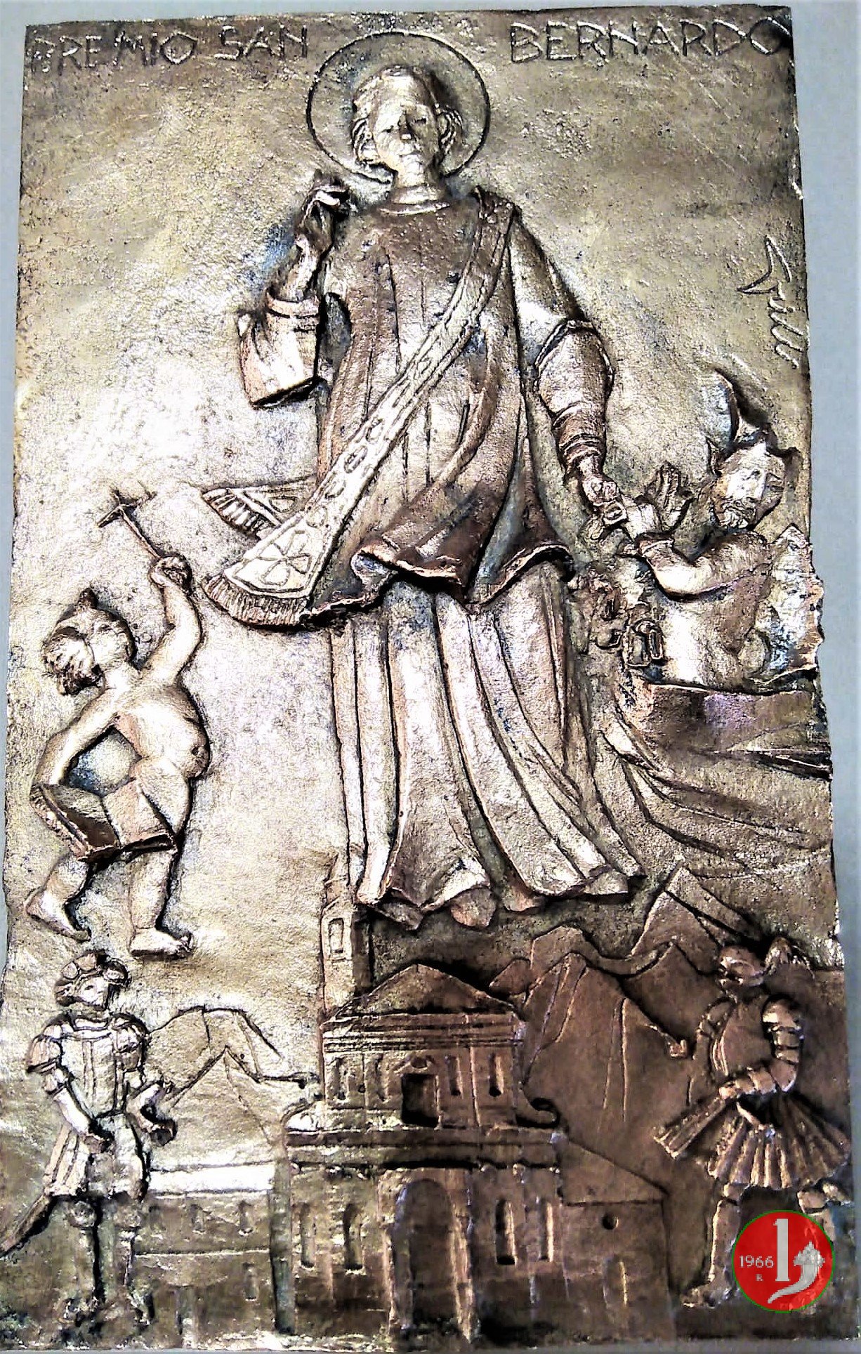 Premio San Bernardo 2013 Dritto: in alto: PREMIO SAN _ BERNARDO Il Santo nimbato e benedicente, in piedi e di fronte, con dalmatica e stola, tra bimbo con Croce e Vangelo e demonio, sormonta il prospetto della Chiesa di Santa Maria Assunta in Mirabello tra due guerrieri con corazze a dx in alto, presso il bordo: GRILLI | |