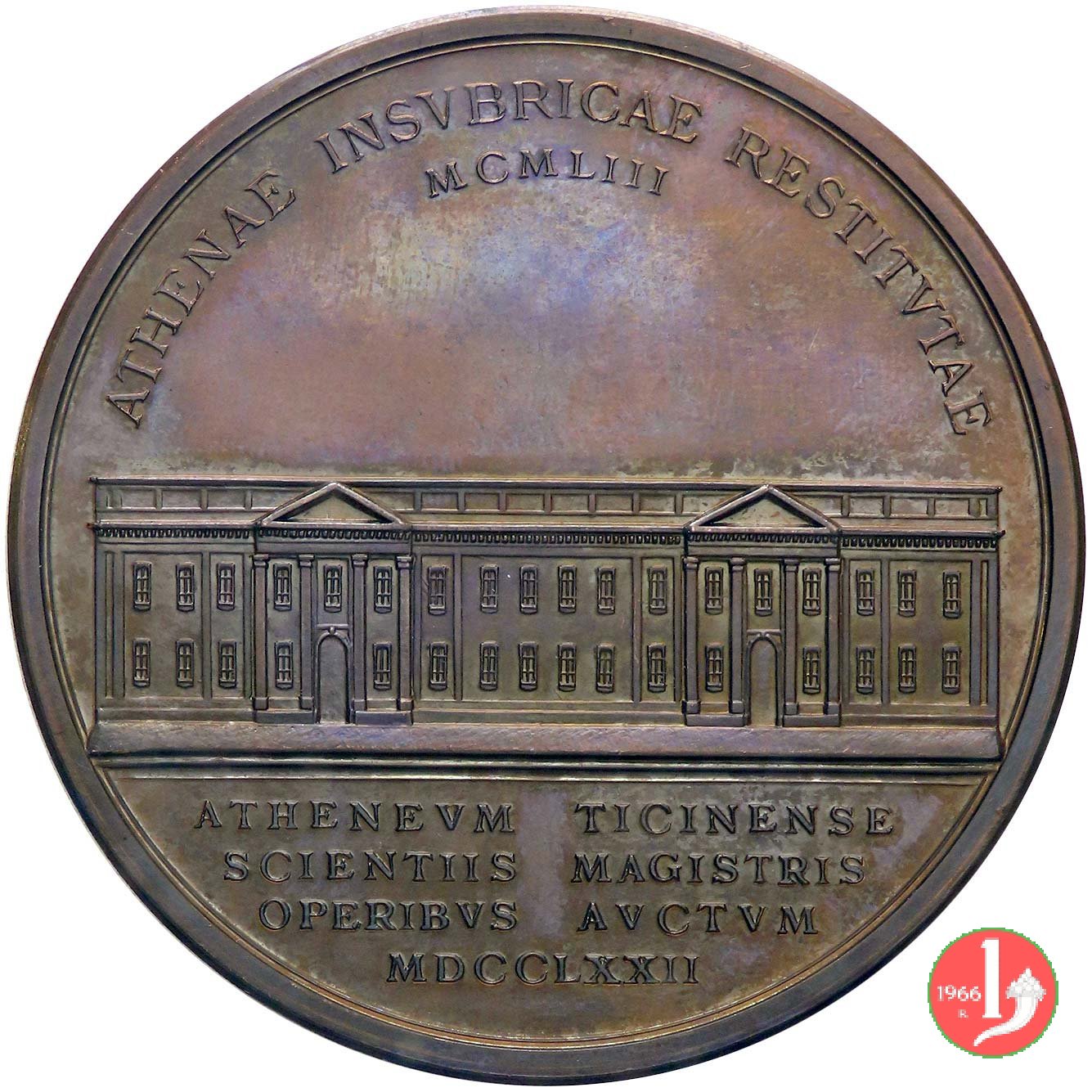 150° Alessandro Volta - Università di Pavia 1977 Dritto: ALEXANDRO VOLTAE NATVRAE INTERPRETI ET AEMVLO circolarmente in seconda riga: CL POST EIVS _ OBITVM ANNO busto a dx di Volta in esergo: VNIVERSITAS TICINENSIS = MCMLXXVII in alto ad arco: MCMLIII Prospetto anteriore del Palazzo dell'Università di Pavia in esergo: ATHENEVM TICINENSE = SCIENTIIS MAGISTRIS = OPERIBVS AVCTVM = MDCCLXXII | |