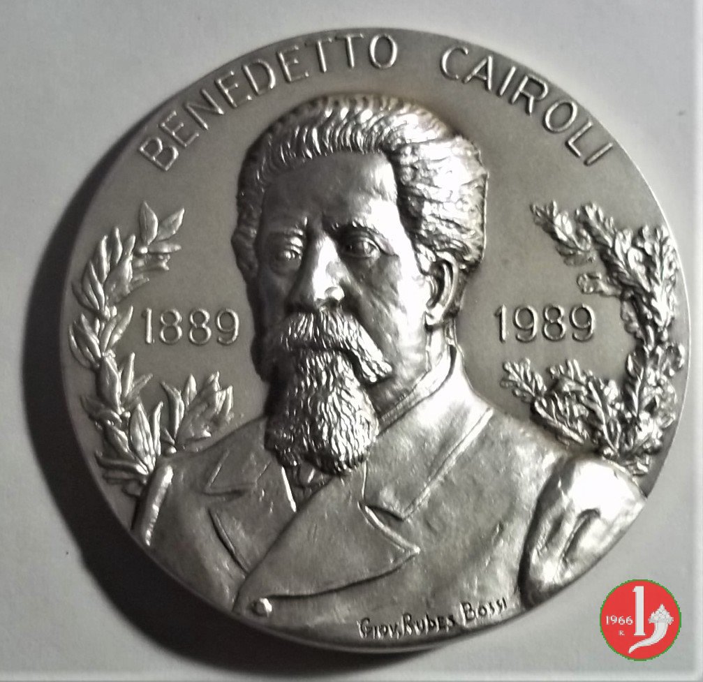Benedetto Cairoli 1989 Dritto: BENEDETTO CAIROLI busto di 3/4 a sx con ai lati rami d'alloro e di quercia ai lati del campo: 1889 _ 1989 in basso, sul busto: GIOV. RUBES BOSSI in alto: Prospetto del fabbricato Il monumento alla famiglia Cairoli dell'architetto Cassi, eretto a Pavia in Piazza del Lino in basso, a sx: LORIOLI | |