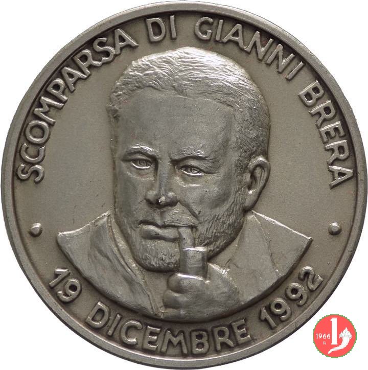 Gianni Brera 19-12-1992 Dritto: SCOMPARSA DI GIANNI BRERA = • 19 DICEMBRE 1992 • busto di fronte con pipa due calciatori in azione in esergo: CDM | |