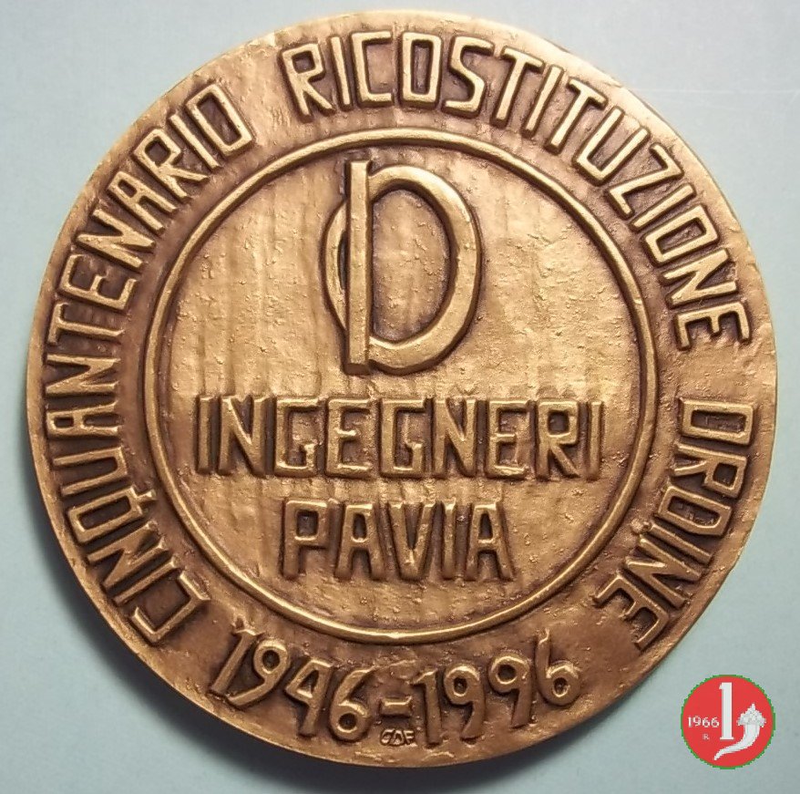 50° Ordine degli Ingegneri di Pavia 1996 Dritto: CINQUANTENARIO RICOSTRUZIONE ORDINE = 1946-1996 entro cerchio continuo: logo dell'Ordine = INGEGNERI = PAVIA in basso: GIOV. RUBES BOSSI | |