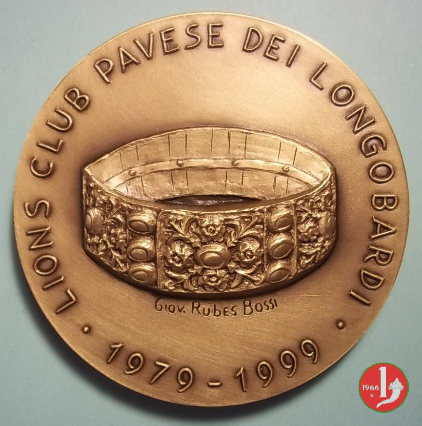 20° Lions Club dei Longobardi 1999 Dritto: LIONS CLUB PAVESE DEI LONGOBARDI = • 1979 - 1999 • Corona Ferrea sotto: GIOV. RUBES BOSSI | |