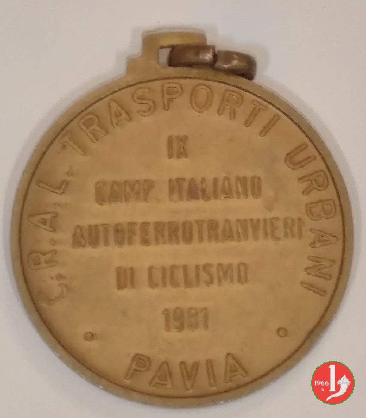 CRAL Trasporti Urbani Pavia 1981 Dritto: composizione composta da: Carrozza della tramvia in alto Il Reggisole al centro tre figure impegnate in attività sportive in basso nel campo: | |