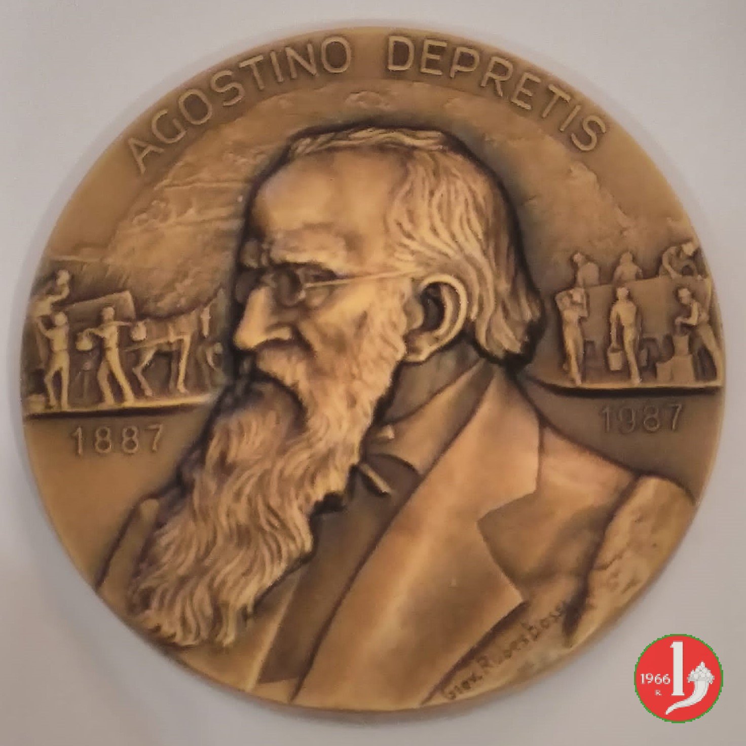 100° Agostino Depretis 1987 Dritto: AGOSTINO DEPRETIS busto a sx con giacca e lunga barba ai lati: 1887 _ 1987 in basso a dx: GIOV. RUBES BOSSI celebrazione presso il monumento di Depretis | |