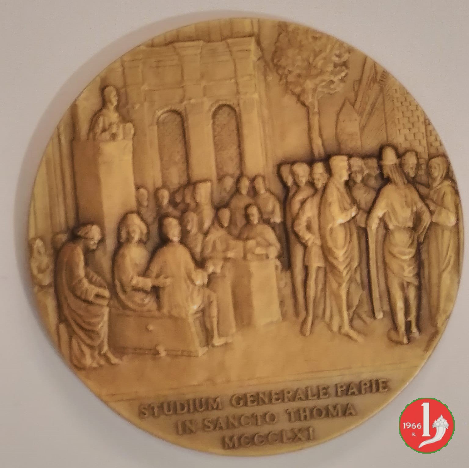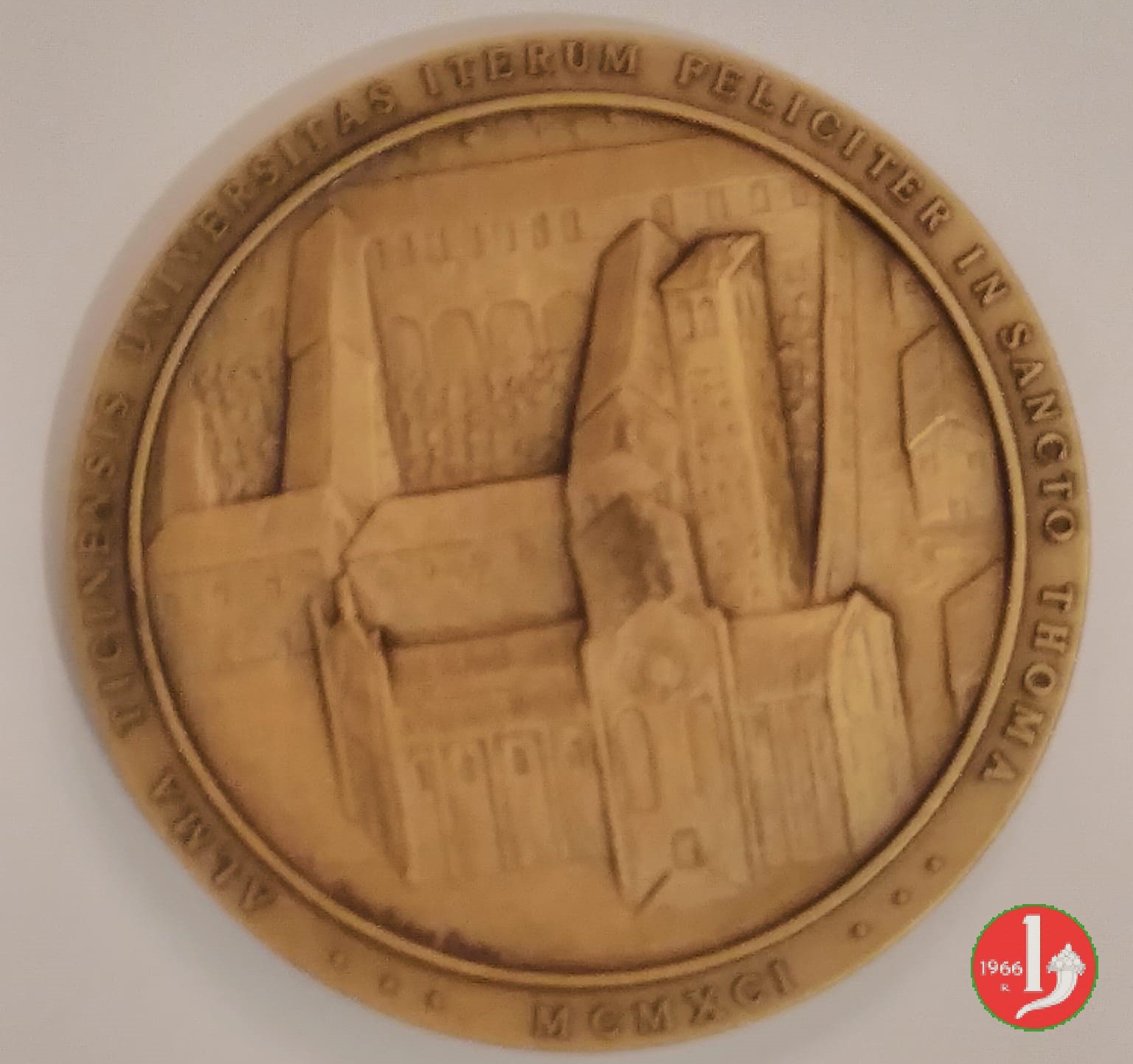 Università di Pavia in San Tommaso 1991 Dritto: ALMA TICINENSIS UNIVERSITAS ITERUM FELICITER Verso: Vista di antica lezione universitaria in esergo: STUDIUM | |