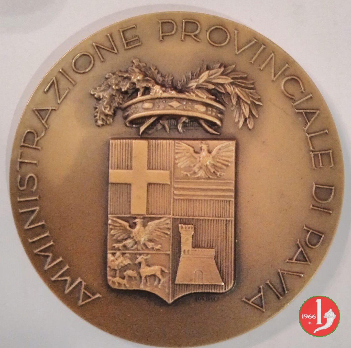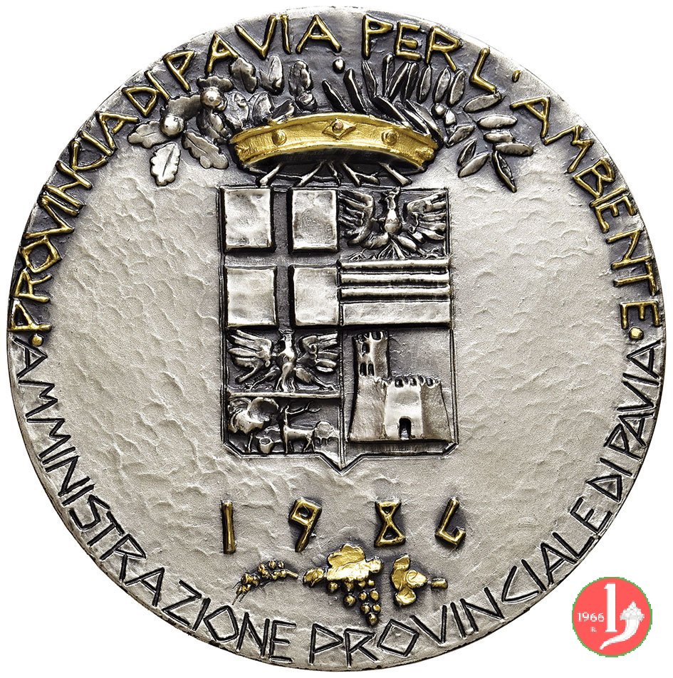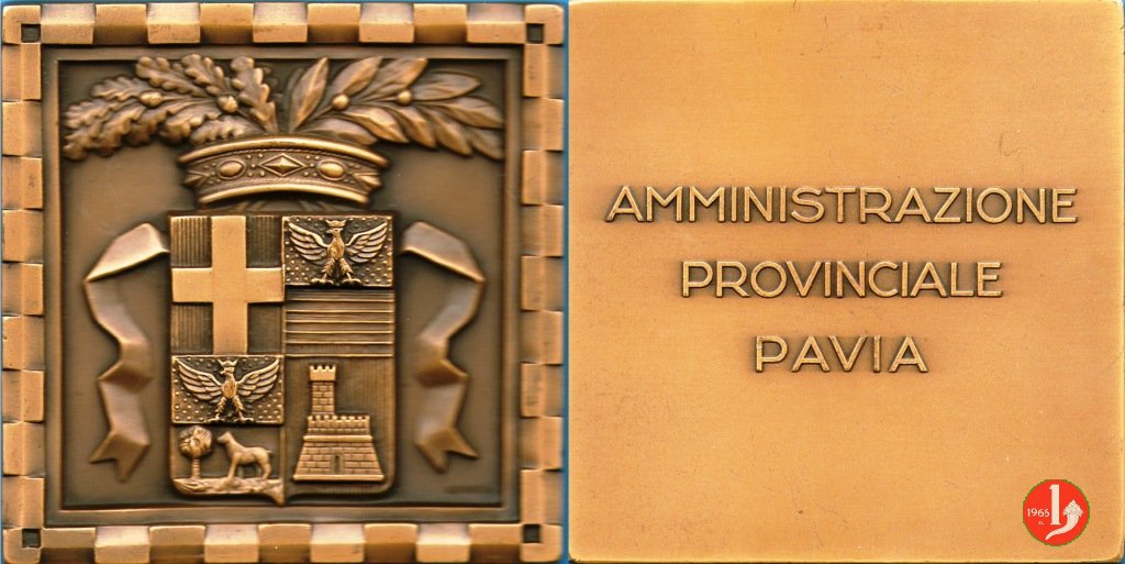 Amministrazione Provinciale di Pavia 1981 Dritto: AMMINISTRAZIONE PROVINCIALE DI PAVIA stemma coronato della Provincia di Pavia in basso a dx: GIOV. RUBES BOSSI | |
