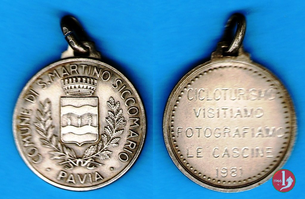 San Martino Siccomario - Fotoconcorso 1981 Dritto: COMUNE DI S. MARTINO SICCOMARIO = • PAVIA • Stemma coronato del comune, tra rami d'alloro e quercia | |
