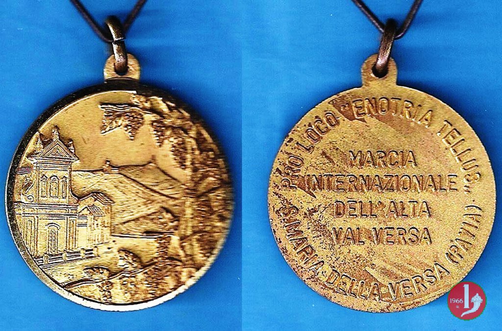 Marcia dell’Alta Val Versa 1974 Dritto: vista anteriore della Chiesa di Santa Maria della Versa con veduta panoramica sui colli dell’Oltrepò; sulla destra un vigneto Verso: PRO LOCO “ENOTRIA TELLUS” = S. MARIA DELLA VERSA nel campo: MARCIA = INTERNAZIONALE = DELL’ALTA = VAL VERSA | |