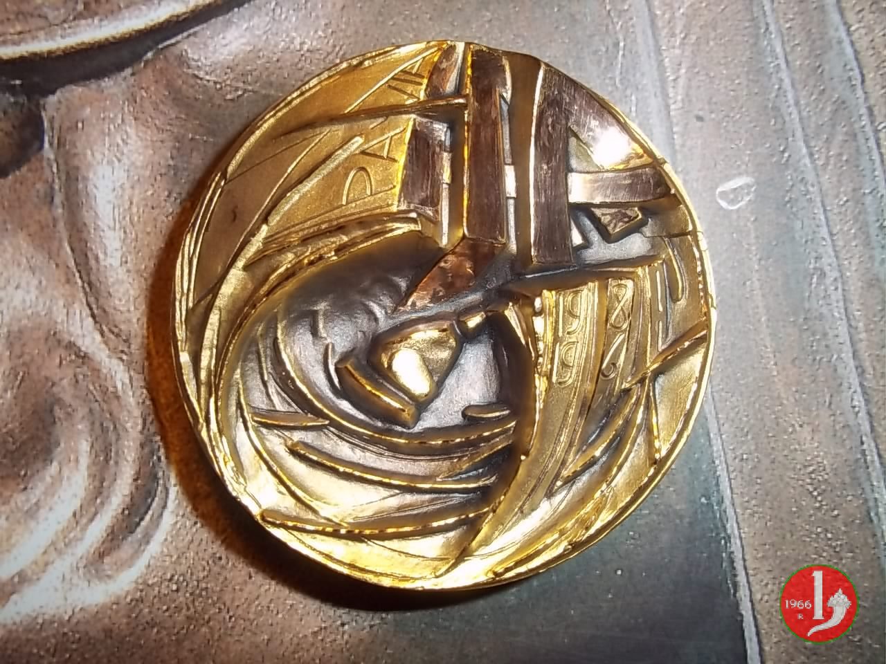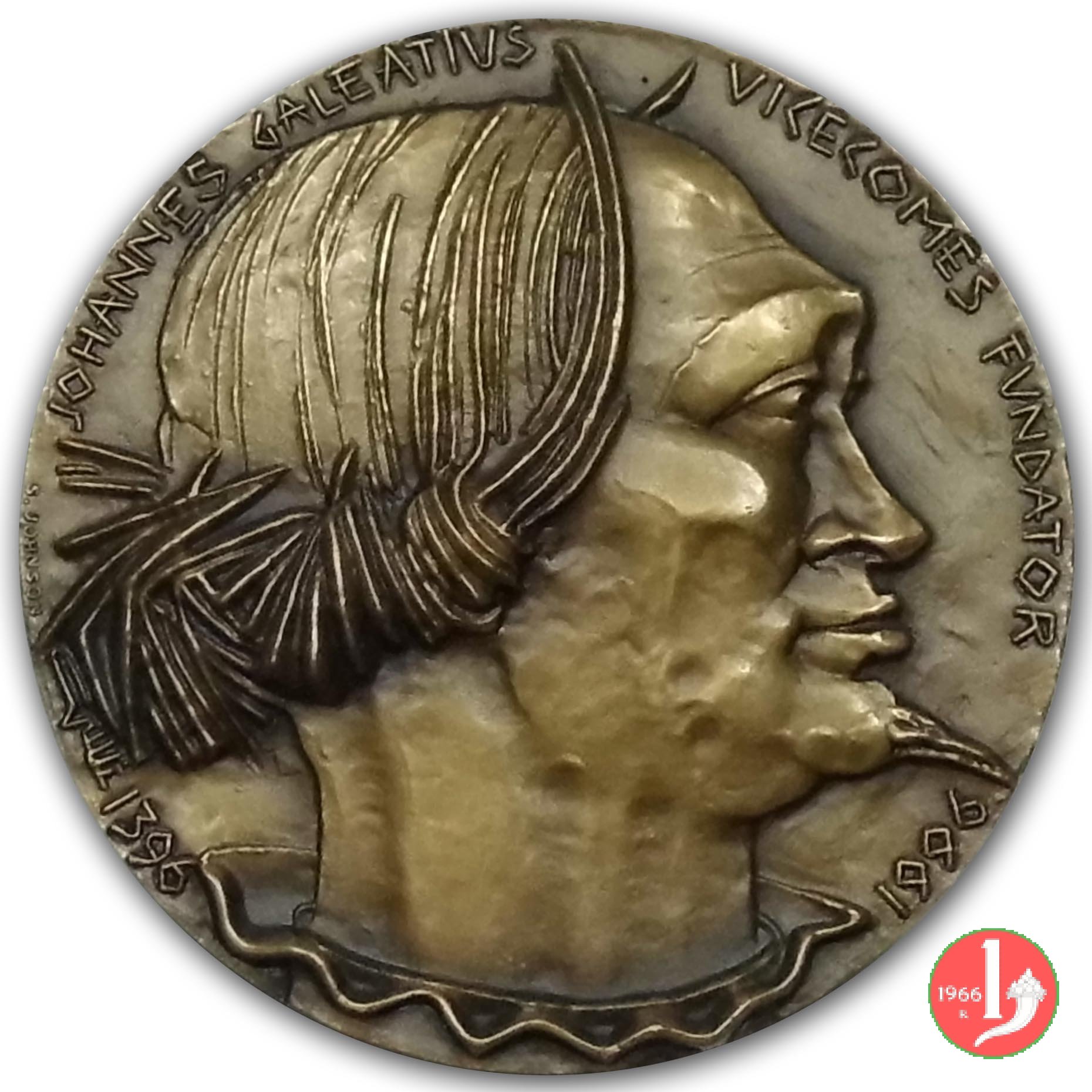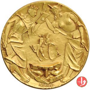 600° Certosa di Pavia 1996 Dritto: JOHANNES GALEATIVS VICECOMES FVNDATOR testa di Galeazzo Visconti a dx sotto: GRILLI 1396 _ 1996 a sx, presso il bordo: S. JOHNSON Galeazzo Visconti e Caterina Della Scala, affrontati, in piedi, reggono il modello della Certosa di Pavia; sulle vesti i simboli delle casate in basso, a sx: GRILLI | |