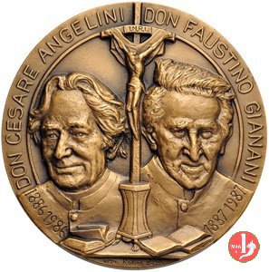CN - Cesare Angelini e Faustino Gianani 1987 Dritto: DON CESARE ANGELINI 1886-1986 _ DON FAUSTINO GIANANI 1887 1987 busti affiancati e divisa da Croce in esergo: GIOV. RUBES BOSSI Vista della cupola e del Duomo di Pavia in esergo: vedute delle Chiese di Albuzzano e di Corte Colonna | |