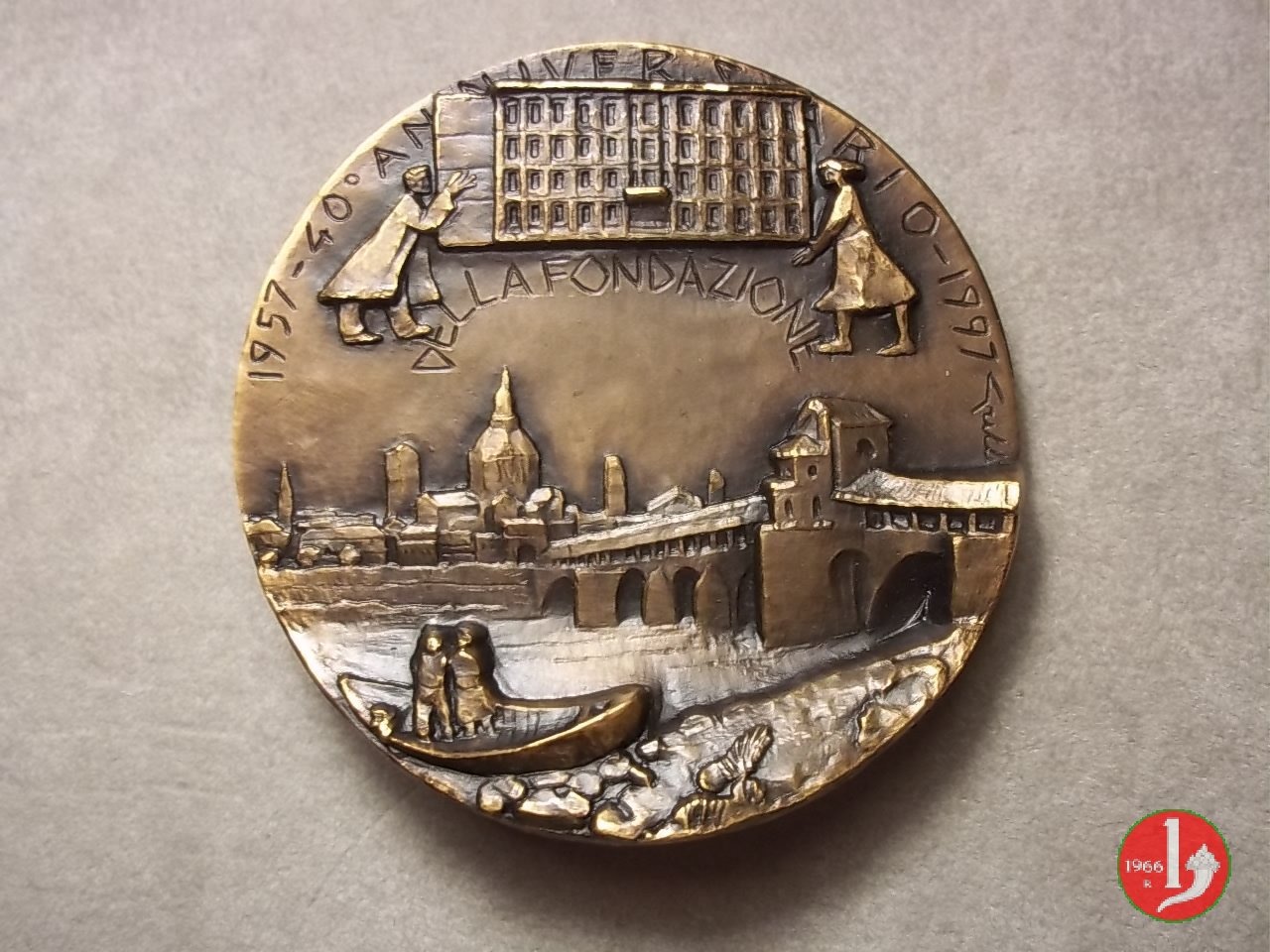 100° S. Riccardo e Collegio S. Agostino 1997 Dritto: TRIVOLZIO busto di 3/4 a dx con mozzetta in basso, a dx, circolarmente: S. RICCARDO PAMPURI = 1897 - 1997 = CENTENARIO DELLA NASCITA a sx: MABA vista del Colleggio S. Agostino sormontata a dx da stemma 1897-1997 = COLLEGIO S. AGOSTINO | |