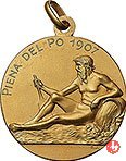 San Benedetto Po - Piena del 1907 Dritto: PIENA DEL PO 1907 la figura allegorica del fiume Po, disteso verso sx, regge timone e versa acqua da orcio in esergo, a dx: S.J. | |