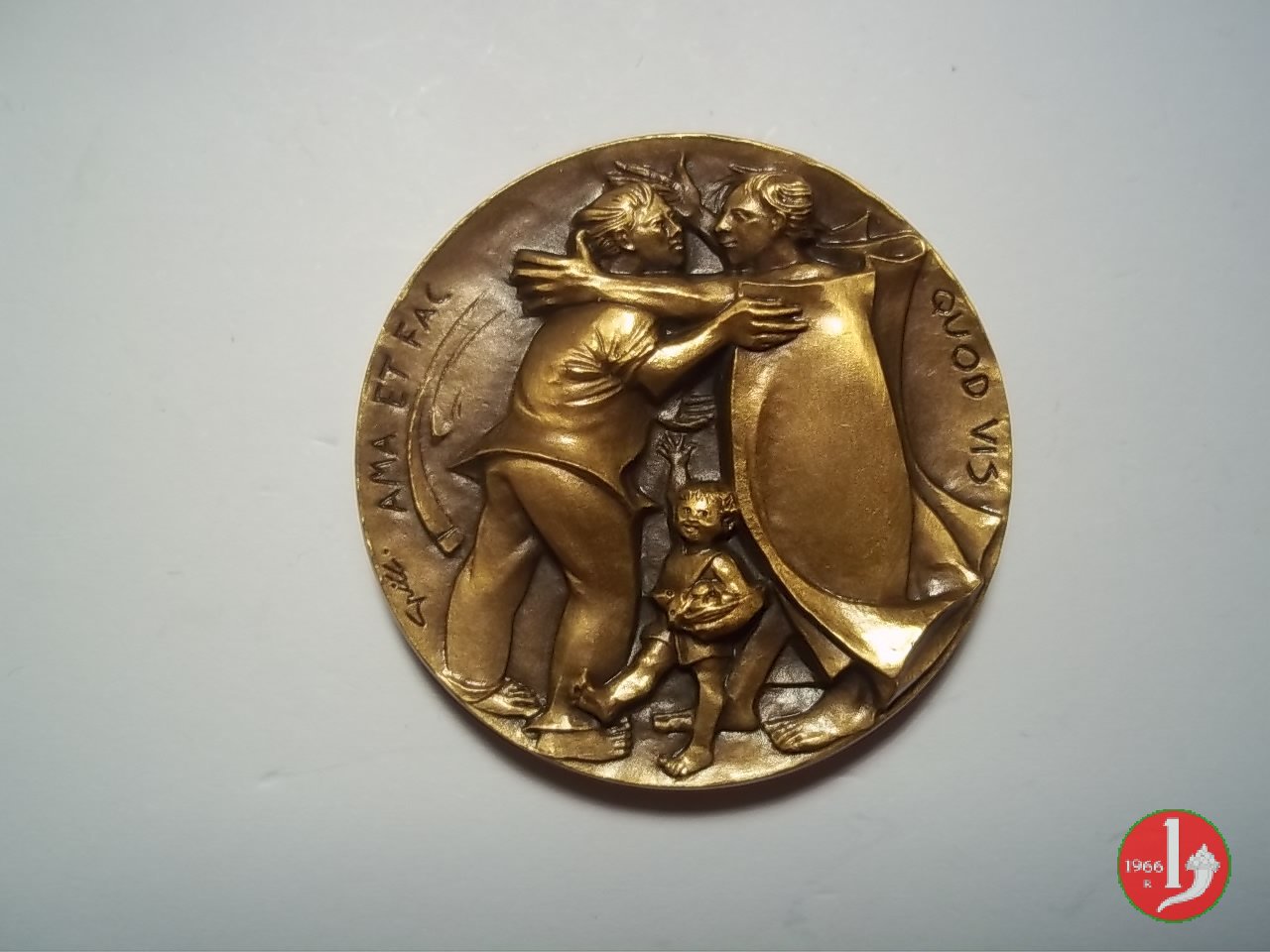 Giovanni Giudici Vescovo di Pavia Dritto: AMA ET FAC _ QVOD VIS bambino tra due uomini che si abbracciano a sx, presso il bordo: GRILLI Stemma Vescovile sormontato da galero a sei nodi e da Croce , posto sopra a nastro sorretto da angeli distesi, con il motto: HAVRITE NVNC ET FERTE a dx, presso il bordo: GRILLI | |