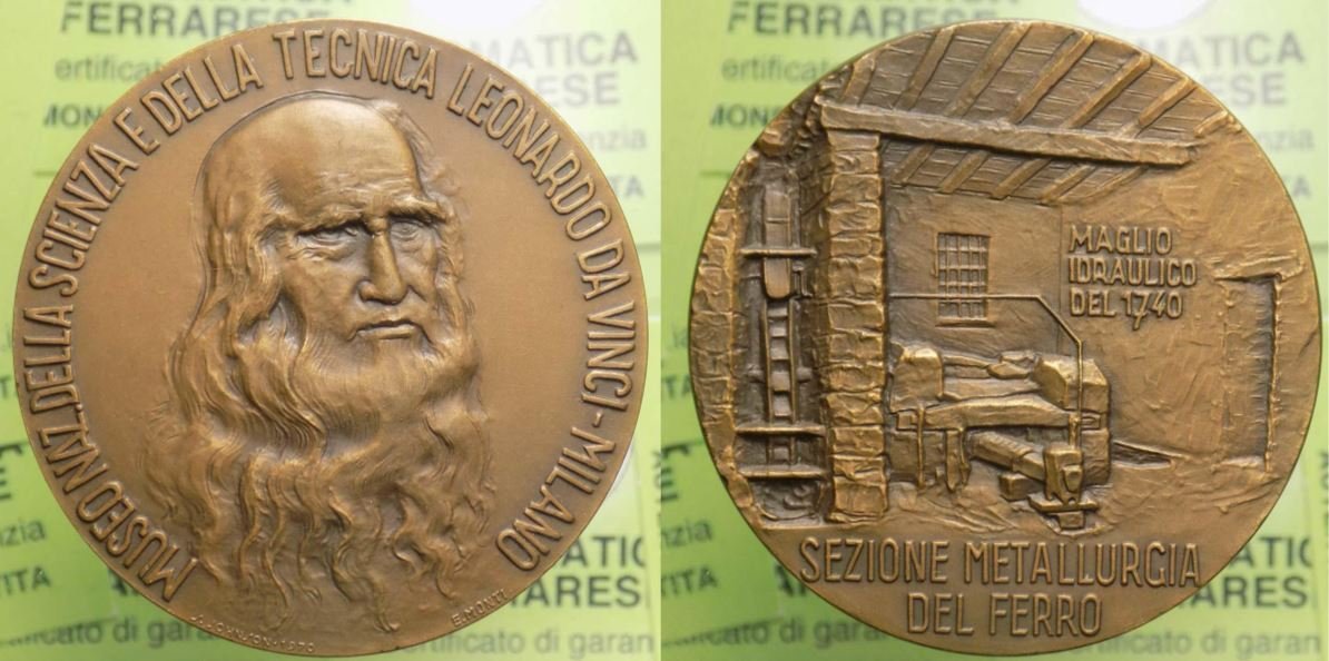 Museo della Scienza e della Tecnica - Metallurgia 1970 Obverse: MUSEO DELLA SCIENZA E DELLA TECNICA LEONARDO DA VINCI - MILANO busto di 3/4 a dx di Leonardo con lunga barba in basso:S. JOHNSON 1970 _ E. MONTI nel campo, a dx: MAGLIO = IDRAULICO = DEL 1740 in esergo: SEZIONE METALLURGIA = DEL FERRO | |||||||||||||||||||||||||||||||||||||||||||||||||||||||||||||||||||||||||||||||||||||||||||||||||||||||||||||||||||||||||||||||||||||||||||||||||||||||||||||||||||||||||||||||||||||