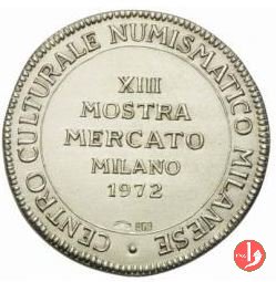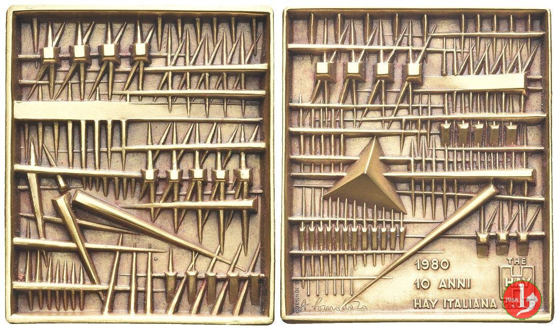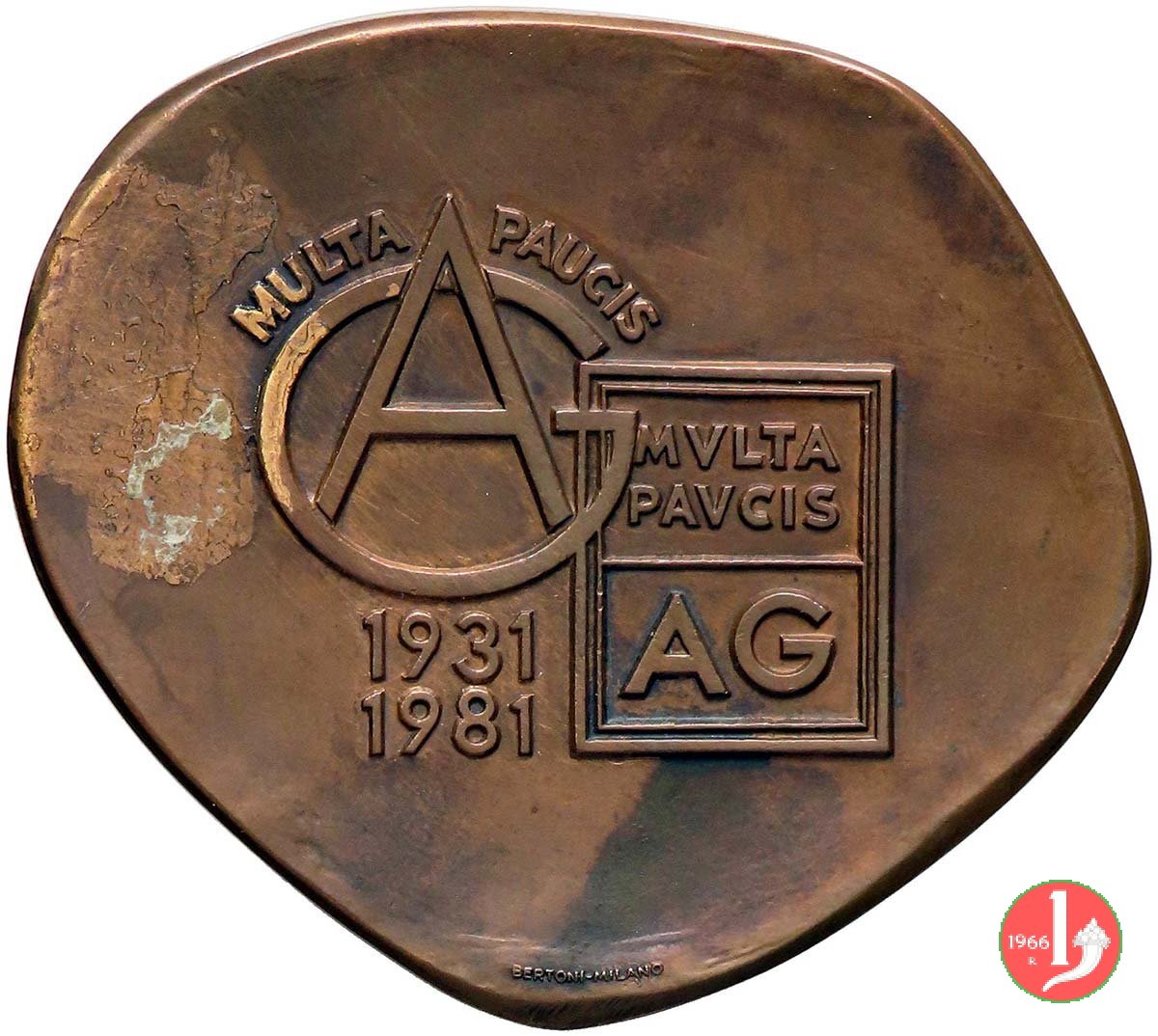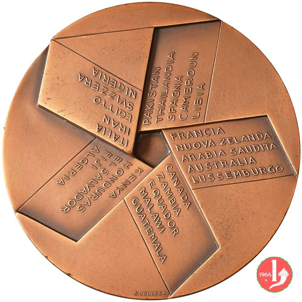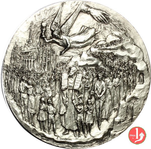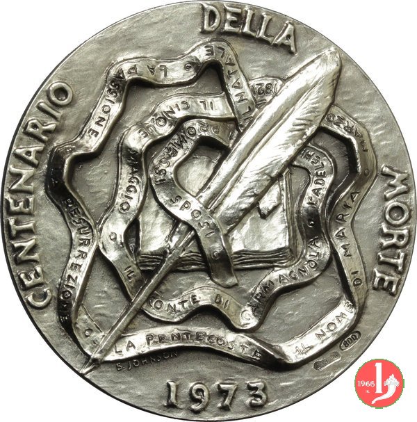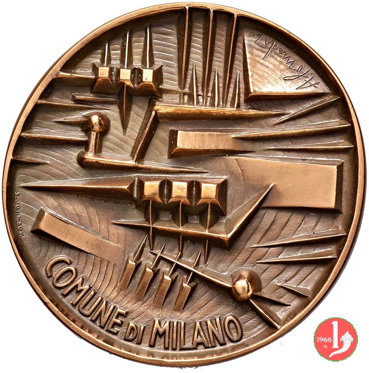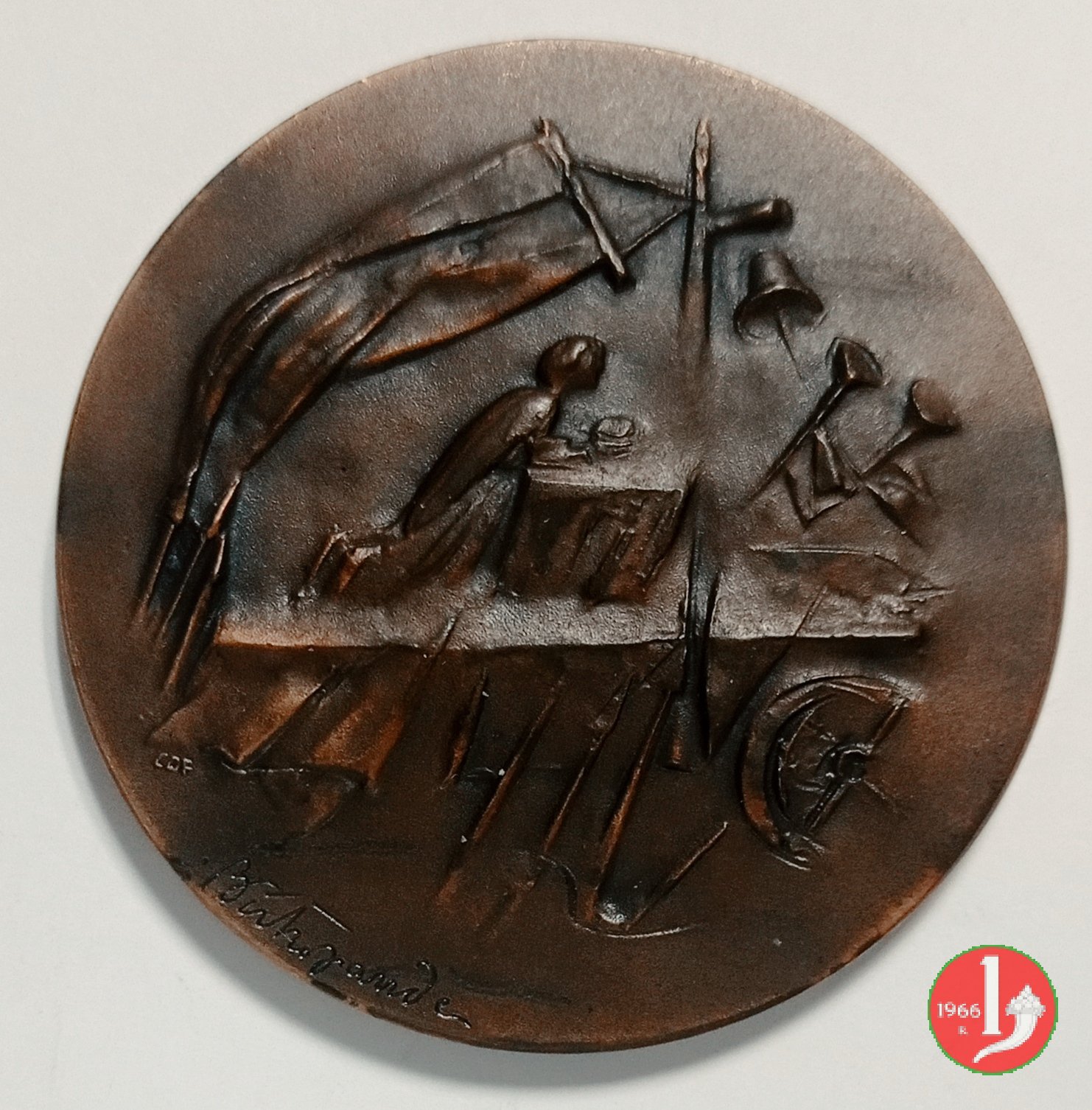 Concorso di Modellismo Navale a Milano 1970 Obverse: ASSOCIAZIONE DI MODELLISTICA NAVALE NAZIONALE vista di poppa di un modello di veliero in esergo: < vista della nuova sede dell'Ospedale in basso: S. JOHNSON nel campo: L'OSPEDALE "G. FORNAROLI" = TRASFERENDO LA SUA ATTIVITA' = COMUNITARIA IN STRUTTURE RINNO = VATE, RINGRAZIA QUANTI HANNO = CONCORSO ALLA LORO REALIZZAZIO = NE E LA AFFIDA AGLI UOMINI DI BUO = NA VOLONTA'; AUGURANDO LA CO = STANTE COLLABORAZIONE DI TUTTI in basso: MAGENTA sotto: Stemma di Milano in basso a dx: S. JOHNSON testa a sx sotto: MESSINA EM ingresso del Museo con serliana in basso, a dx: BRINDISI Stemma del Partito Popolare Italiano LIBERTAS in basso, a sx: MAGGI in basso a dx: AFFER Logo con al contorno: MERCATORUM MEDIOLANI UNIVERSITAS sotto: CAMERA DI COMMERCIO • IN = DUSTRIA E AGRICOLTURA = PRIMO PREMIO = MEDAGLIA D'ORO = PER FEDELTA' AL LAVORO = E PROGRESSO ECONOMICO = 28 • NOV • 1971 Scultore genuflesso a dx batte con martello e scalpello su pietra, a sx alcune lastre nel campo a sx: AFFER Logo con al contorno: MERCATORUM MEDIOLANI UNIVERSITAS sotto: CAMERA DI COMMERCIO • IN = DUSTRIA E AGRICOLTURA = PRIMO PREMIO = MEDAGLIA D'ORO = PER FEDELTA' AL LAVORO = E PROGRESSO ECONOMICO = 28 • NOV • 1971 in basso: E. MANFRINI nel campo spazio per dedica: 1971 in basso a dx: logo Senesi ES = M in basso a dx: S.J nel campo: CINQUANTENARIO = 1921 - 1971 San Pietro salva barca tra marosi in basso: BASILICA DI S. EUSTORIGIO = IN MILANO in basso: ME Stemma coronato della Città di Milano in basso: S. JOHNSON in esergo tra steli floreali: CIRCOLO FILOLOGICO = MILANESE = 1872 in basso: TN. INC. = S. JOHNSON Vista della Diga a volo d'uccello sotto: INGENIERO E CONSULTORES in basso: - SIR ALEXANDER GIBB & PARTNERS LONDRES - Vista delle chiuse dal basso nel campo a dx: HIDRONOR S.A. = REPUBLICA = ARGENTINA Scudo inquartato con Biscione e aquila imperiale sormontato da due elmi affrontati. L'elmo di sinistra è ornato con cimiero raffigurante drago crestato che stringe tra le fauci un fanciullo. L'elmo di destra è ornato da cimiero con mostro alato con testa di vecchio che stringe tra gli artigli un anello. Tra i due elmi un globetto. nel campo, entro cerchio continuo: XIII = MOSTRA = MERCATO = MILANO = 1972 in basso: SJ figura allegorica velata, in piedi e volta di 3/4 a dx, regge Palazzo Reale e cornucopia di frutti in basso, a dx: MIS = TRV = ZZI nel campo, entro quadrato: VIRESQUE = AQUIRIT = EUDO = APRILE 1972 figura allegorica velata, in piedi e volta di 3/4 a dx, regge Palazzo Reale e cornucopia di frutti in basso, a dx: MIS = TRV = ZZI nel campo: PER = FEDELTA' = ramo d'alloro in basso, ai lati: BERTONI _ MILANO nel campo entro cornice circolare perlinata: Stemma coronato con biscione degli Sforza in campo stellato Vista di Panoramica di Milano con il Duomo in primo piano a sx in basso, a sx, sul busto: MESSINA in basso, circolarmente: ALESSANDRO MANZONI nel campo, ai lati: 1873 _ 1973 Albero busto di 3/4 a dx con giacca, camicia e papillon nel campo, a dx: 1785 = 1873 busto di 3/4 a sx con papillon sotto, circolarmente: DON RODRIGO E FRA CRISTOFORO busto a sx con giacca, camicia e foulard al collo nel campo, a sx: E. TESTA penna su libro con nastro concentrico su cui i titoli di lacune opere di Manzoni: IL NATALE _ LA PASSIONE _ LA RESURREZIONE _ LA PENTECOSTE _ IL NOME DI MARIA _ MARZO 1821 _ IL CINQUE MAGGIO _ IL CONTE DI CARMAGNOLA_ L'ADELCHI _ I PROMESSI SPOSI sotto: S. JOHNSON busto di 3/4 a sx di Manzoni con sciarpa nel campo, a dx: 1785 = 1873 nel campo, in alto:...ADDIO MONTI = SORGENTI DALL'ACQUE... vista del Batell che attraversa il Lago di Como Ruota dentata al centro di spirale dentata in basso: VEROI in basso a sx: S. JOHNSON Muratore in piedi con secchio sulle spalle, volto di 3/4 a sx nel campo, in basso a dx: monogramma logo della Ditta: SOCOGEN su muro a mattoni faccia-vista a dx sotto la linea dell'esergo: S. JOHNSON in esergo: MILANO nel campo, a dx: BRUNO = LOCATELLI in basso, a dx: Stemma turrito del Comune di Milano in basso: MILANO = AI SVOI = CADVTI = IN GVERRA - MAGGIO 1973 Mausoleo su rami di palma e d'alloro Logo dell'Ospedale Fatebenefratelli entro due ovali tra rami d'alloro: CICERI 1823 _ F.B.F. 1588 sotto a sx: S. JOHNSON busto nudo di 3/4 a sx in basso:S. * GAZZANIGA in basso: BERTONI-MILANO tra dieci volti disposti circolarmente, entro ovale AMBROGIO ✠ VESCOVO DI MILANO ✠ busto di Sant'Ambrogio di fronte con mitra in basso, a sx: SEBASTIO esternamente a nastro circolare su croce di legnetti: LA MESSE E' _ MOLTA MA _ GLI OPERAI _ SONO POCHI. sul nastro: SERRA = INTERNATIONAL entro il nastro: vista della Basilica di Sant'Ambrogio sul Duomo di Milano busto di 3/4 a dx di Leonardo con lunga barba in basso:S. JOHNSON 1974 _ E. MONTI logo del Museo della Scienza e della Tecnica di Milano sotto: 17 APRILE 1974 in alto: nave a vapore al centro: treno con motrice e due vagoni, sovrapposta a linea LAVENO M. - MALNATE - MILANO in esergo: Duomo di Milano in basso, a dx: OGLIARI - SAPI U.I.C. = COMITE DE GERANCE = 115a SESSION = MILANO 26-27-28 SETTEMBRE 1974 in esergo: MUSEO NAZIONALE DELLA = SCIENZA E DELLA TECNICA ai lati della testa di Leonardo: LEONADO _ DA VINCI in basso, a dx: S. JOHNSON in basso a sx: TERUGGI cavallo rampante a sx con cavaliere che regge torcia e scudo contenete il logo del Rotary in basso a dx: S. JOHNSON Due putti sorreggono panneggio e stemma col biscione, sullo sfondo postale ai lati: 1945 _ 1975 in basso: maschera in basso a sx: S. JOHNSON in basso a dx in corsivo: EMILIO MONTI vista dello Stabilimento Curti due al lavoro colano metallo su 50° nel campo, a dx: AFFER testa velata e diademata a dx in basso, a dx: P. MENINI (?) in basso, tra la perlinatura: E. PAGANI busto nimbato di fronte con mitra e piviale nel campo, entro cerchio continuo: XIV = MOSTRA = MERCATO = MILANO = 1975 in basso: SJ in alto a dx corsivo: ARRIGO MINERBI in basso a sx: S. JOHNSON ES INC. in basso ai lati di logo circolare: MILA