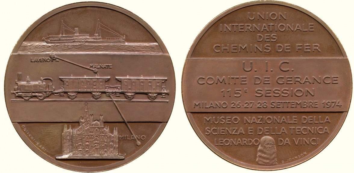 Museo della Scienza e della Tecnica - Trasporti Ferroviari 1970 Obverse: MUSEO DELLA SCIENZA E DELLA TECNICA LEONARDO DA VINCI - MILANO busto di 3/4 a dx di Leonardo con lunga barba in basso:S. JOHNSON 1970 _ E. MONTI locomotiva sotto: LOCOMOTIVA GR. S 685 F.S. = 1930 | |||||||||||||||||||||||||||||||||||||||||||||||||||||||||||||||||||||||||||||||||||||||||||||||||||||||||||||||||||||||||||||||||||||||||||||||||||||||||||||||||||||||||||||||||||||