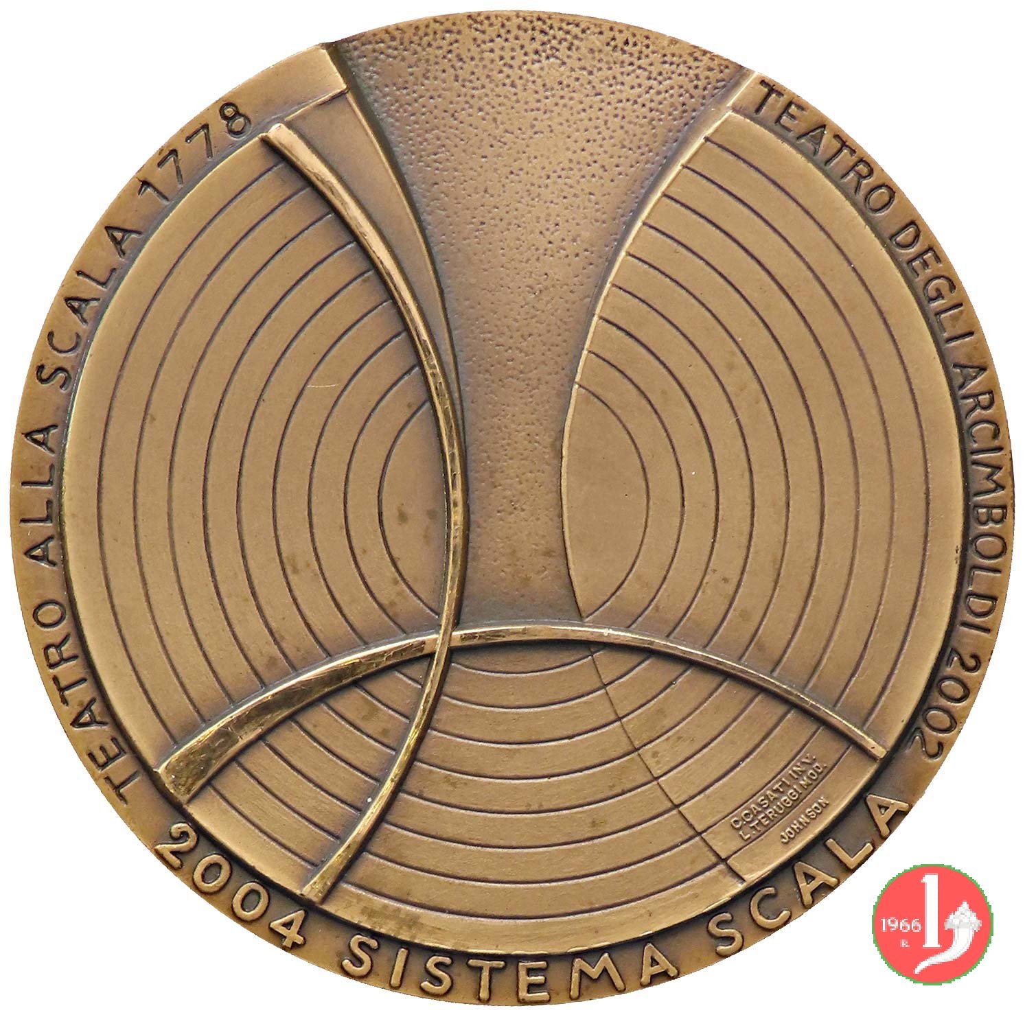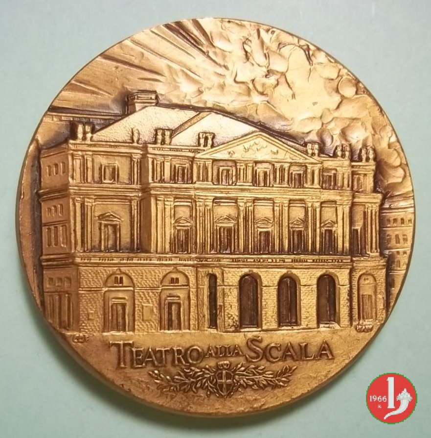Obverse: Il Teatro "La Scala" con composizione di monumenti di Milano: Castello Sforzesco, Duomo, Sant'Ambrogio, Arco della Pace, Campanile di San Gottardo in Corte, ingresso della Galleria Vittorio Emanuele II e il Pirellone