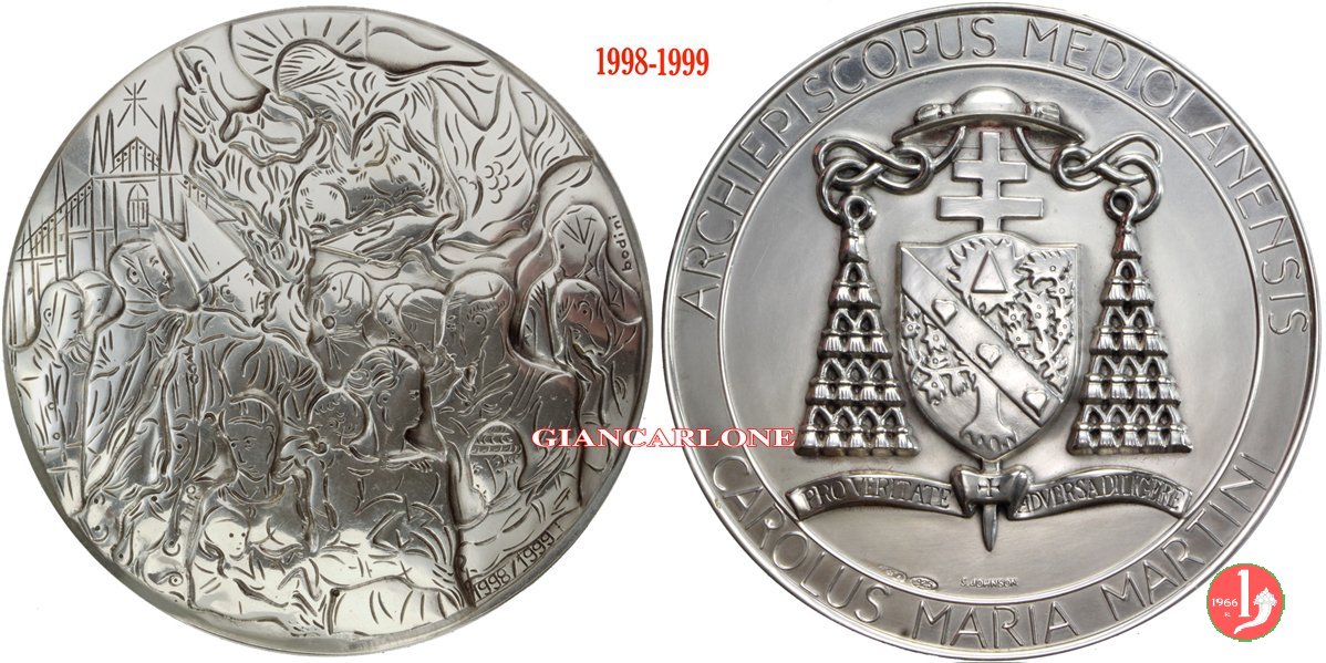 Obverse: busto di Gesú Cristo benedicente a sx il Card. Martini genuflesso tra la folla