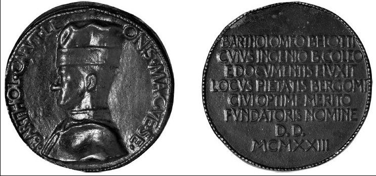 Reverse: nel campo entro targa: BARTOLOMEVS COLIONVS = NOBILIS BERGOM PRIVILEGIO = ANDEGAVIENSIS