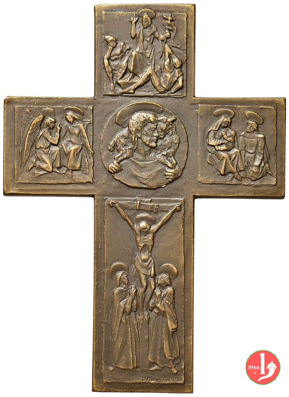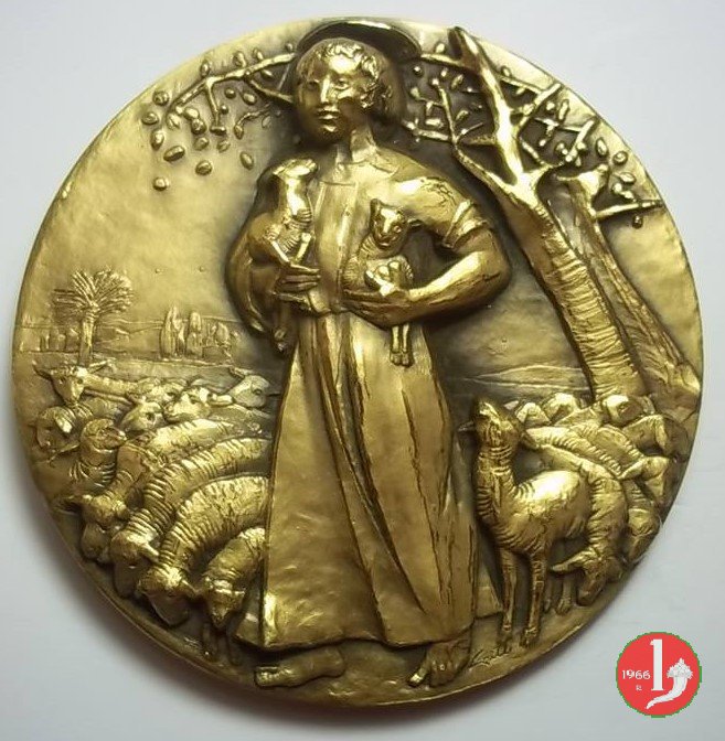 Obverse: Il Buon Pastore nimbato e in piedi, tra le pecore regge due agnelli