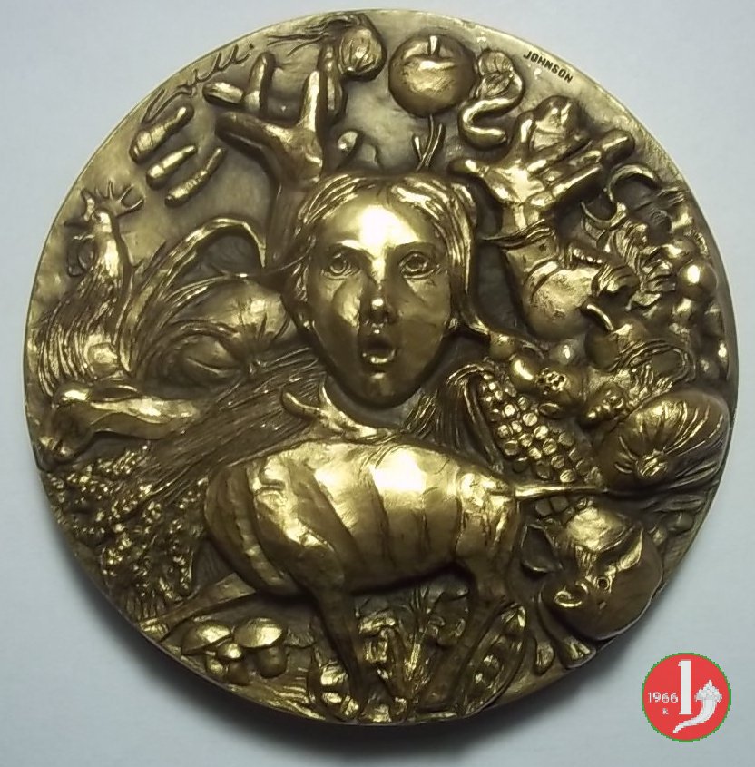 Obverse: Colombe in volo verso sx su pannocchie di mais (vedi note)