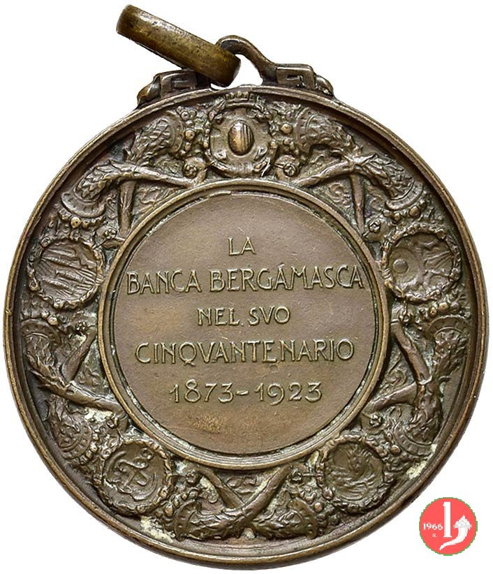Reverse: BERGOMENSIVM PERITORVM CONSOCIATIO NVMMORVM = • MCMLXV •