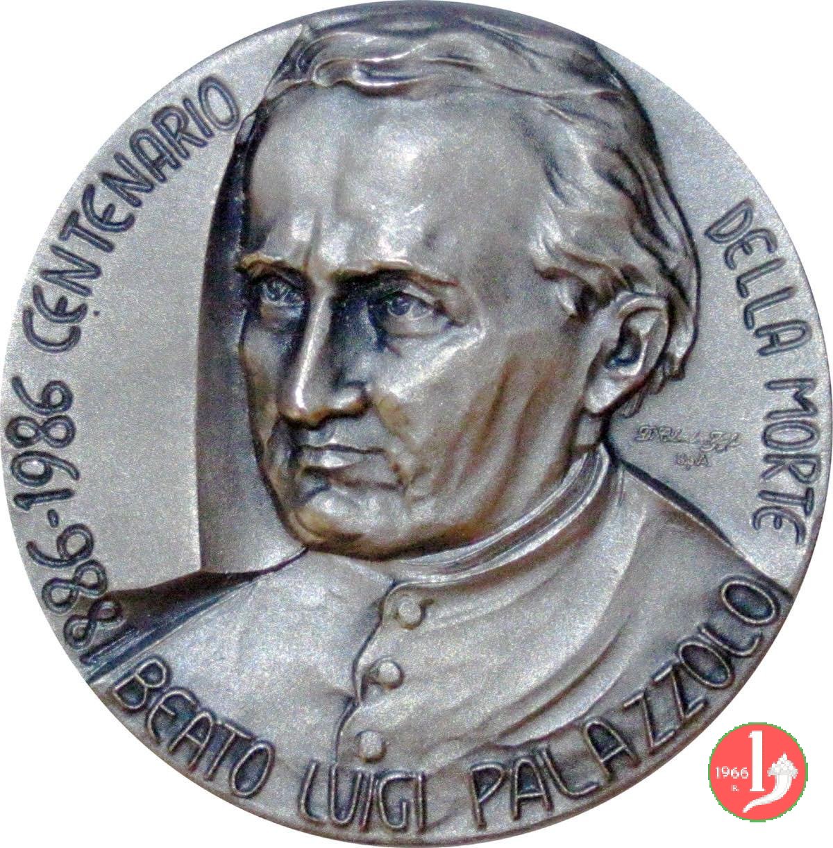 100° Luigi Palazzolo 1986 Dritto: 1886-1986 CENTENARIO _ MORTE = BEATO LUIGI PALAZZOLO busto di 3/4 a sx con abito talare nel campo a dx: D. COLOMBO & FIGLI = Spa in basso: SUORE DELLE = POVERELLE = CASA MADRE - BERGAMO | |