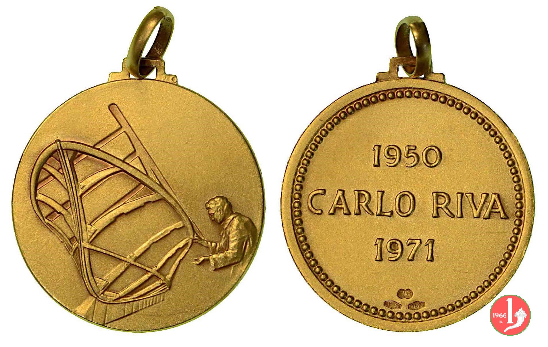 Carlo Riva 1971 Dritto: busto di Artigiano, volto a sx, impegnato nella costruzione di un telaio di un motoscafo Verso: nel campo: 1950 = CARLO RIVA = 1971 | |
