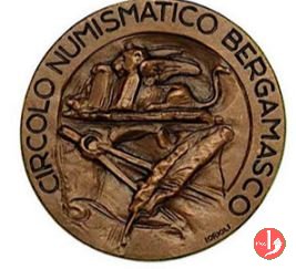 CN 20° Circolo Numismatico Bergamasco 1984 Dritto: due mani su panneggio reggono 20° ai lati: 1964 _ 1984 in basso: CNB in basso, a dx: JOHNSON ragazza, seduta verso dx, regge quadretto con medaglia e sullo sfondo a dx monumenti di Bergamo a sx, presso il bordo: GUIDOTTI | |