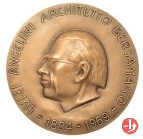 Luigi Angelini 1984 Dritto: LUIGI ANGELINI ARCHITETTO BERGAMASCO = - 1884 • 1969 - testa a sx sotto: TILIO NANI in basso a dx: LORIOLI '84 | |