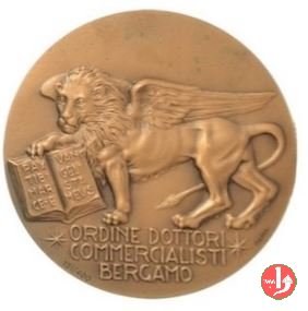 Ordine Dottori Commercialisti Bergamo 1976 Dritto: MAR _ CVS San Marco nimbato, seduto di fronte, con mantello, regge Vangelo e penna in basso, a dx: BROLIS 76 in esergo: * ORDINE DOTTORI * = COMMERCIALISTI = BERGAMO in basso, a dx: LORIOLI | |