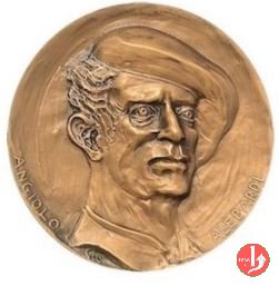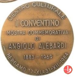 Angiolo Alebardi - Mostra 1984 Dritto: busto di 3/4 a dx con cappello in basso, ai lati del busto: ANGIOLO _ ALEBARDI sotto: GIO nel campo: IL CONVENTINO = MOSTRA COMMEMORATIVA = DI = ANGIOLO ALEBARDI = 1883 - 1969 in basso, circolarmente: BERGAMO 17-XI=31-XII-1984 in basso, a sx: LORIOLI | |