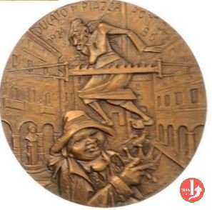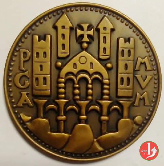 50° Ducato di Piazza Pontida 1974 Dritto: in alto: DUCATO DI PIAZZA PONTIDA = 1924 _ BG. Vista di Piazza Pontida in Bergamo Bassa con il busto di Pietro Ruggeri; in basso, il Gioppino con corona e al centro il taglio della vecchia in basso, a dx: GUIDOTTI | |