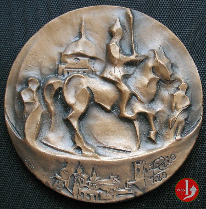 60° Ducato di Piazza Pontida 1984 Dritto: DUCATO DI PIAZZA PONTIDA = 1924 _ BG due figure carnevalesche con il logo del Sodalizio culturale in basso a dx: GUIDOTTI in basso a sx: LORIOLI | |