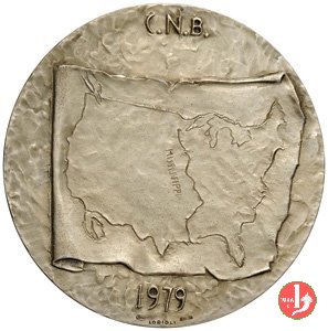 CN 200° Costantino Beltrami 1979 Dritto: COSTANTINO BELTRAMI busto a sx sovrapposto a vela e a cascata del Missisipi sotto: 1799 • 1855 sotto il busto: S. LOCATELLI planimetria su cartiglo dell'America del Nord in esergo: 1979 in basso: LORIOLI | |