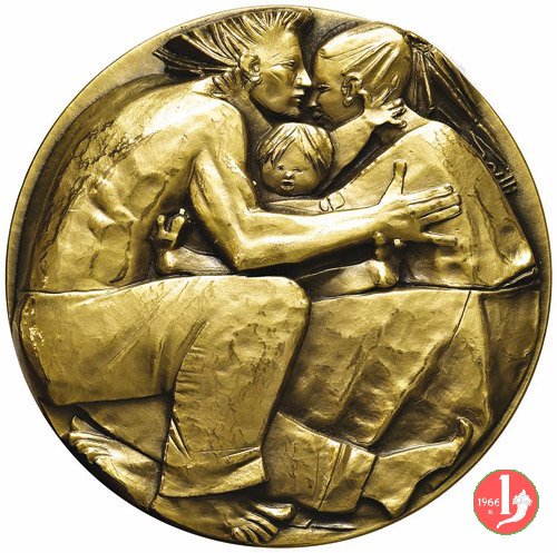 Banco di Bergamo 1982 Dritto: una famiglia: uomo e donna contrapposti si abbracciano con bimbo al centro in alto a dx: GRILLI in basso: BANCO DI BERGAMO = 19 _ 82 a sx, presso il bordo: S. JOHNSON | |