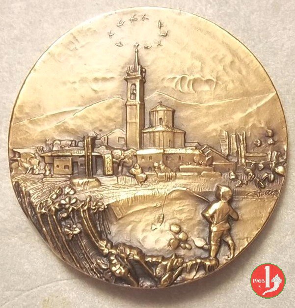 CN Giovan Battista Moroni 1978 Dritto: G. BATTISTA _ MORONI busto di 3/4 a dx con camicia, regge compasso e disegno in esergo: 1523 - 1578 sul disegno corsivo: MONTE Stemma di Albino e gonfalone di Bergamo su tavolozza in basso a dx: LORIOLI | |
