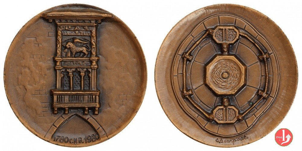 CN 200° Fontana Contarini 1980 Dritto: leone rampante a sx sulla trifora di Palazzo della Ragione a Bergamo in basso: 1780 C.N.B. 1980 in basso: C. SCARPANTI | |