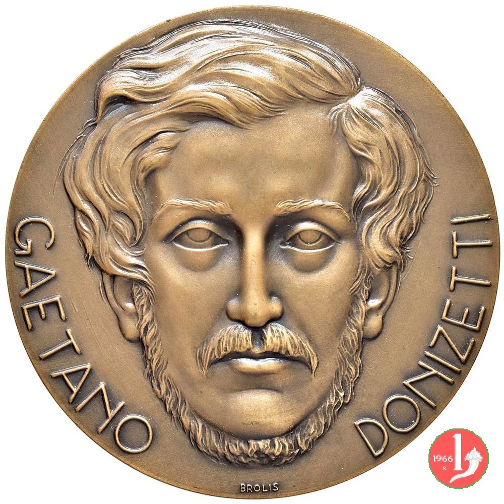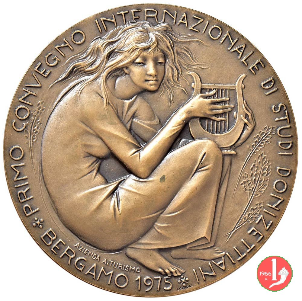 Convegno Internazionale di Studi Donizettiani 1975 Dritto: GAETANO _ DONIZETTI testa di fronte sotto: BROLIS figura femminile china a dx, suona la lira sotto: AZIENDA A. TURISMO in basso: LORIOLI | |