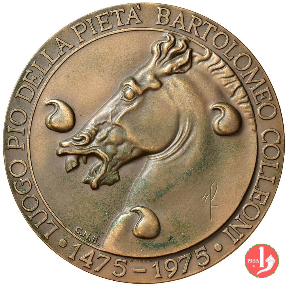 CN Bartolomeo Colleoni 1975 Dritto: testa elmata a dx con mano che regge asta (picca) Verso: LUOGO PIO DELLA PIETA' BARTOLOMEO COLLEONI = • 1475-1975 • entro cerchio continuo: testa di cavallo a sx a dx: RF in basso: C.N.B. | |