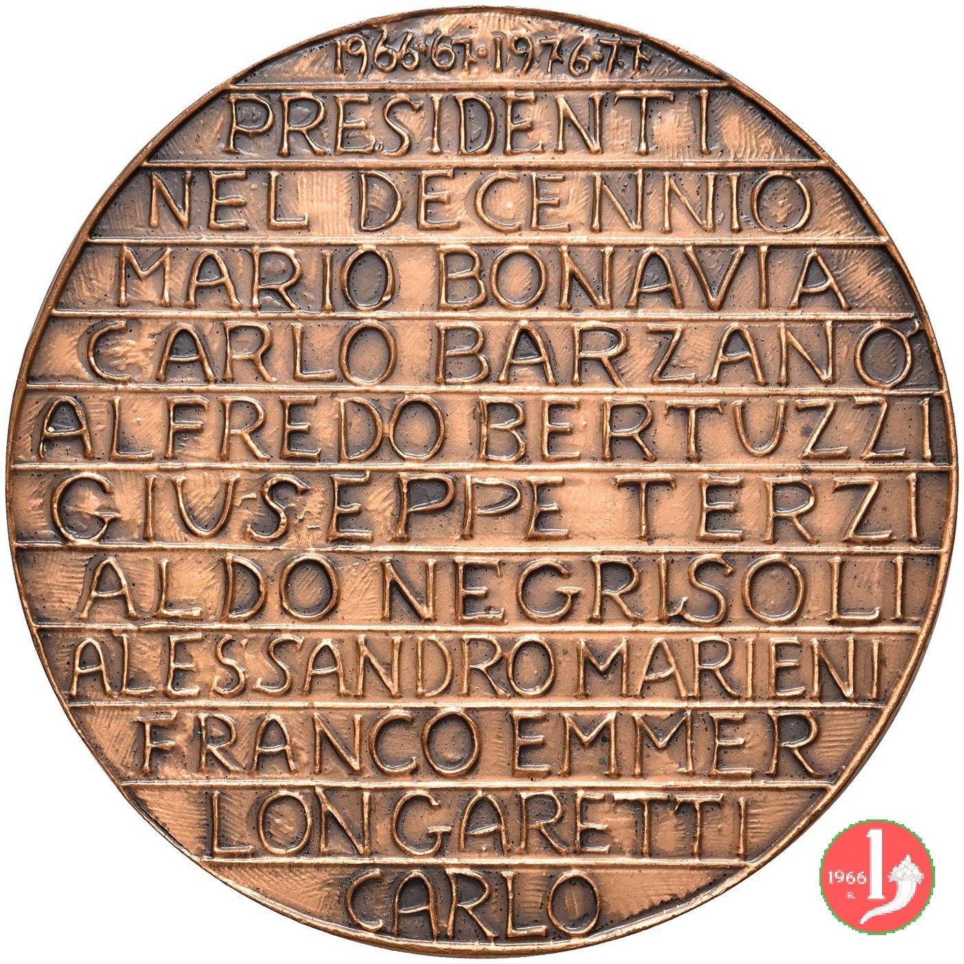 CN Andrea Fantoni 1975 Dritto: due figure sollevano un drappo dietro il quale appare il busto di Fantoni sotto: ANDREA FANTONI in basso: EA: (o AJOLFI) monogramma del Fantoni in ovale in basso: C.N.B = 1975 in basso, a sx: LORIOLI | |