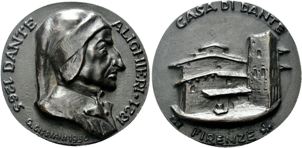 Dritto: DANTE ALIGHIERI FLOR. 1265. 1321