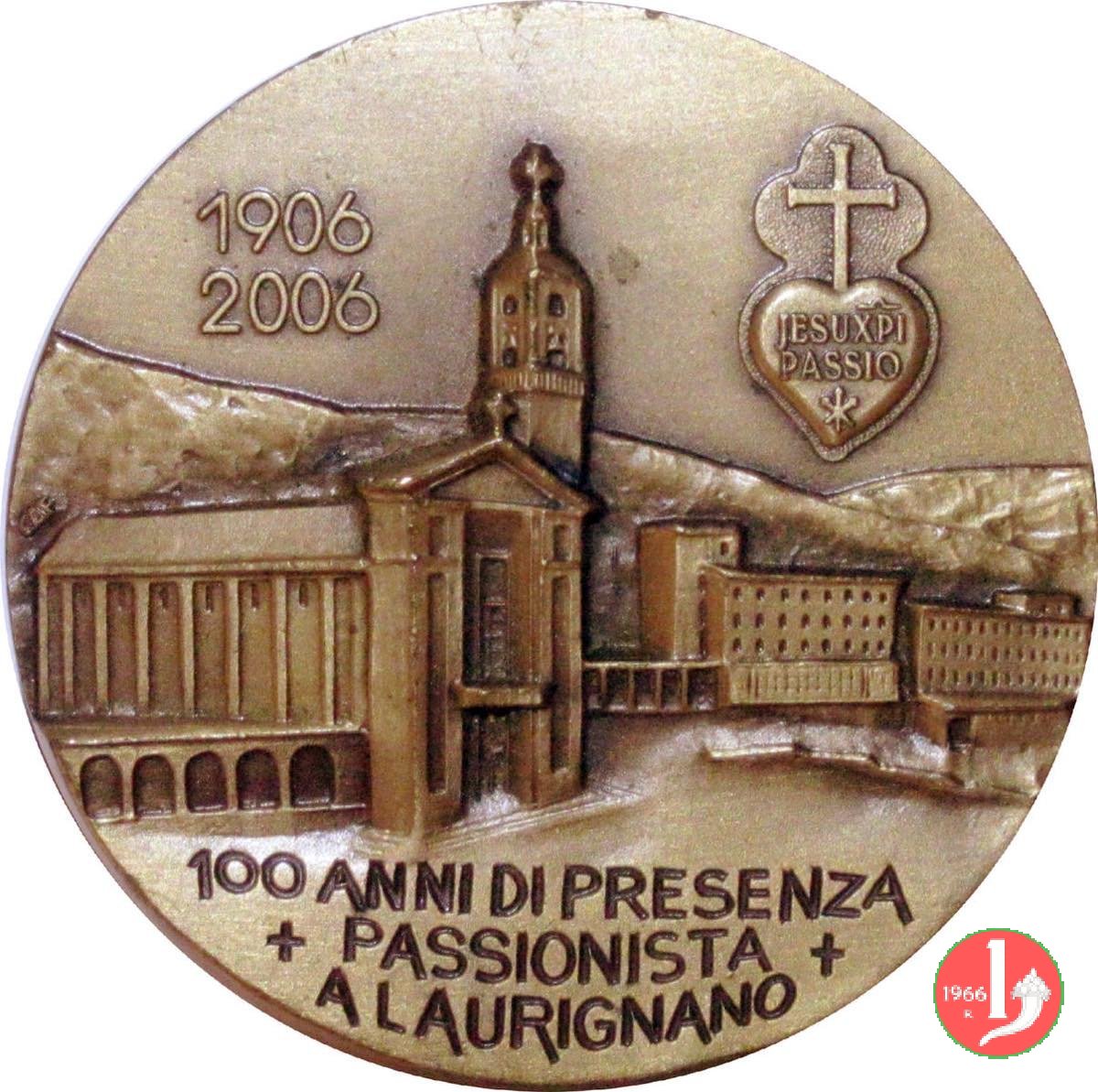 Laurignano - Santuario Maria della Catena 2006 Dritto: MARIA SS. _ DELLA CATENA busto velato e coronato di fronte della B. V. Maria con il Bambino Gesú coronato, regge catena vista del Santuario Maria della Catena in alto a dx: Cuore sormontato da Croce JESU XPI = PASSIO = tre chiodi decussati in esergo: 100 ANNI DI PRESENZA = ✠ PASSIONISTA ✠ = A LAURIGNANO | |