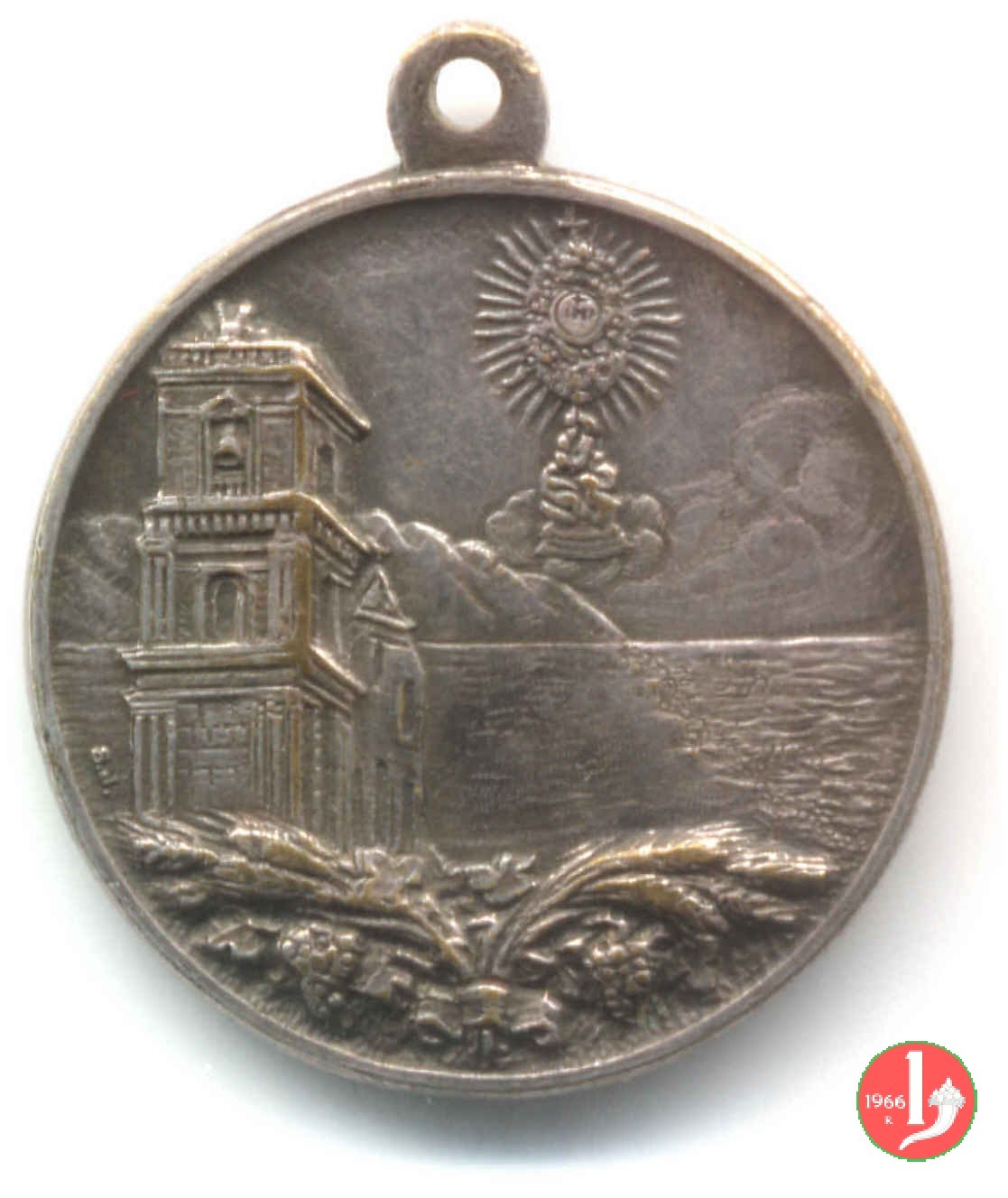 Congresso Eucaristico 1933 Dritto: Vista della Torre Campanaria del Duomo e sullo sfondo ostensorio elevato sul mare in basso: mazzo di spighe legate in basso, a sx: S.J. sotto: Aquila ad ali spiegate tra spighe e grappoli d'uva | |