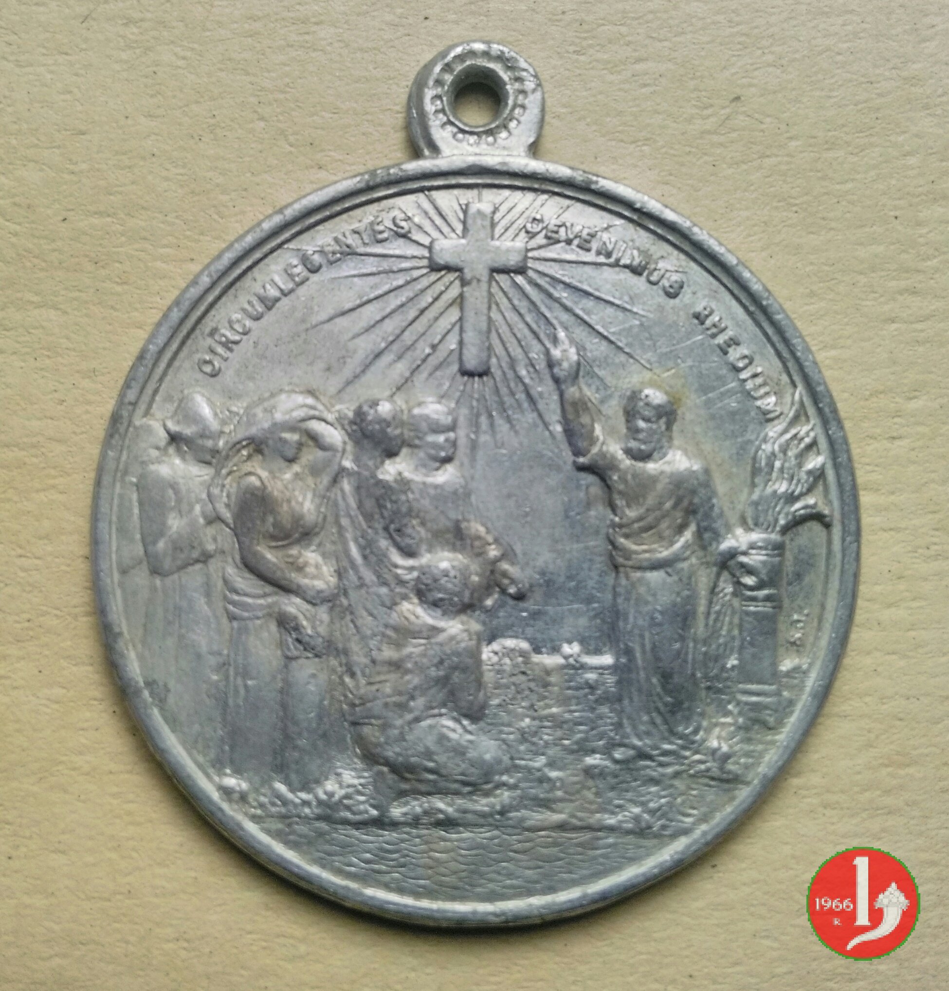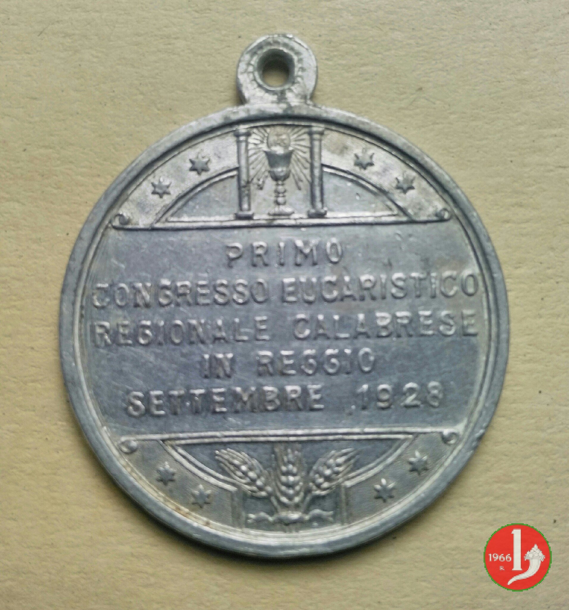 1° Crongresso Eucaristico Reg. Calabrese 1928 Dritto: CIRCUM LEGENTES _ DEVENIMUS RHEGIUM in alto: Croce raggiante Gesú benedice fedeli in preghiera | |