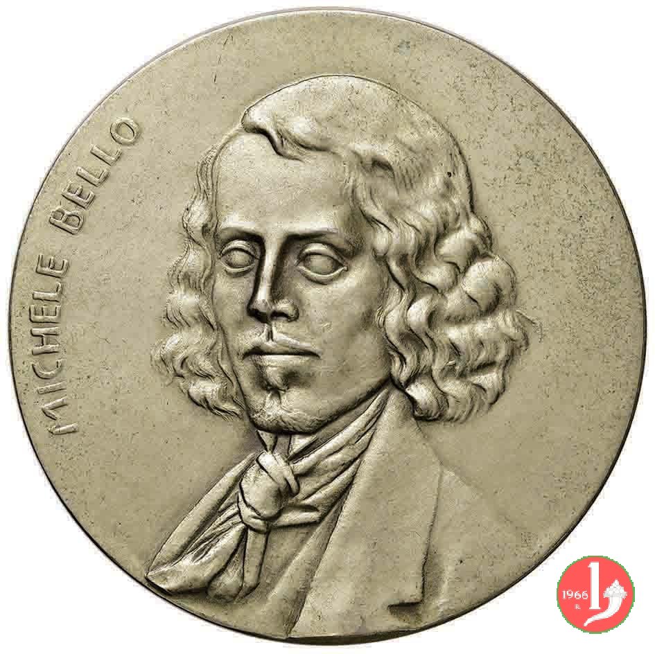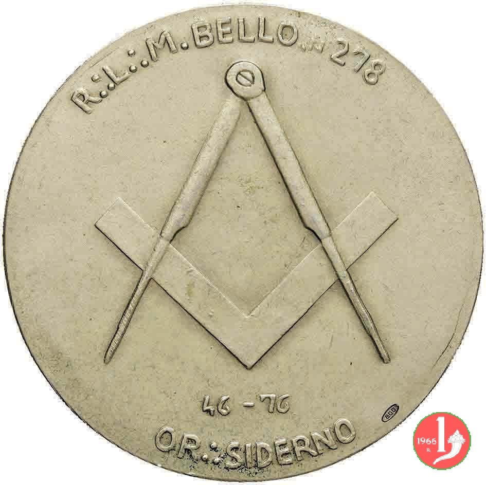 Siderno -Michele Bello Dritto: MICHELE BELLO busto di 3/4 a sx con giacca, camicia e foulard compasso su squadro sotto: 46-76 in basso: OR | |