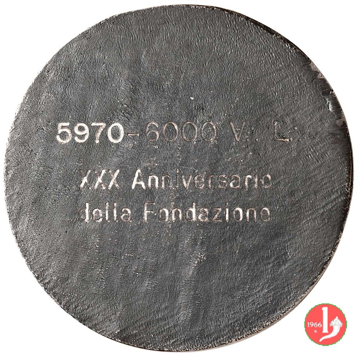 Verso: nel campo inciso: numerazione V :⋮ L :⋮ = XXX ANNIVERSARIO = DI FONDAZIONE